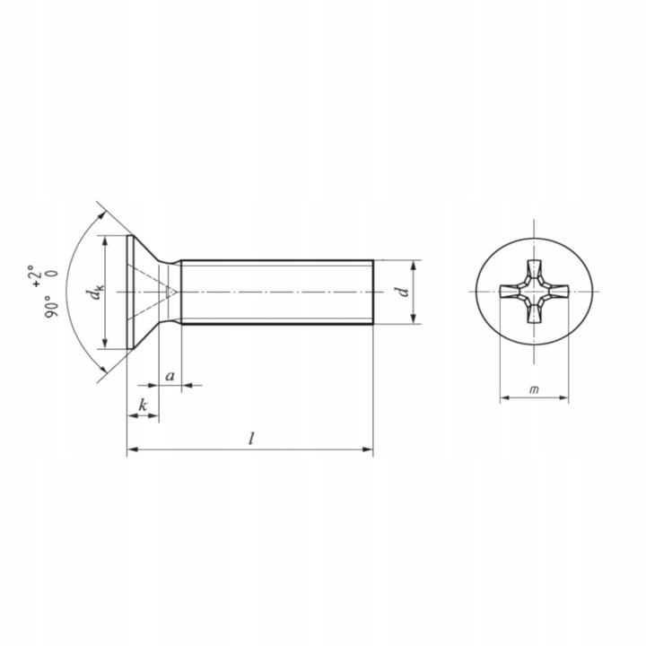 WKRĘT METRYCZNY ŁEB STOŻKOWO - PŁASKI GNIAZDO KRZYŻOWE