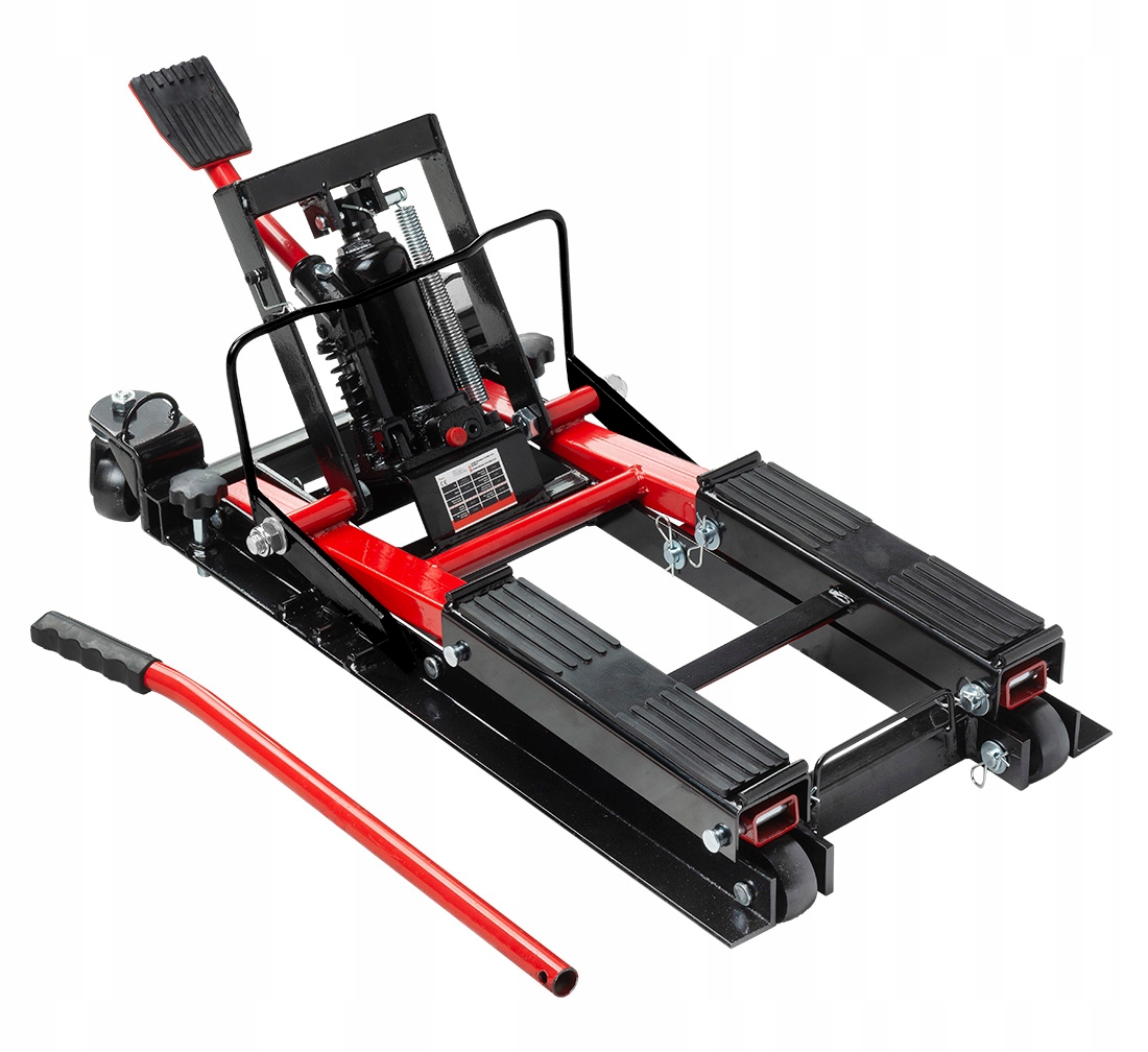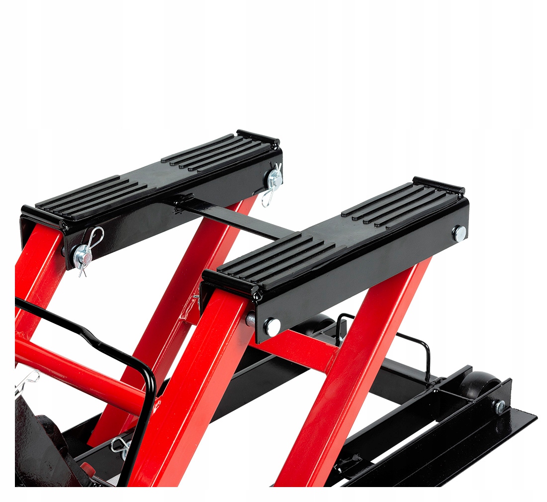 Podnośnik ma zapadki blokujące - co zapewni lepsze bezpieczeństwo. Dodatkowo, gumowe podkładki to lepsza stabilizacja pojazdu na podnośniku.