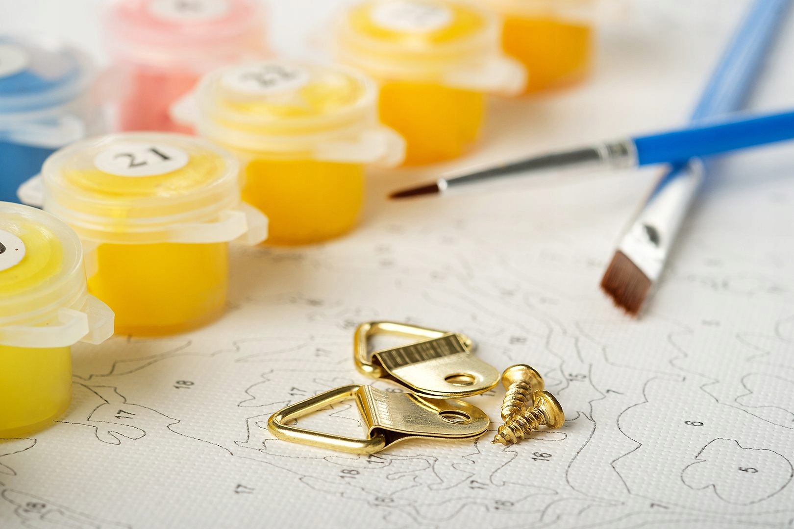 ➡️ Elementy mocujące: W zestawie znajdują się haczyki i śrubki, które umożliwiają łatwe zawieszenie gotowego obrazu na ścianie, abyś mógł od razu cieszyć się efektem swojej pracy.