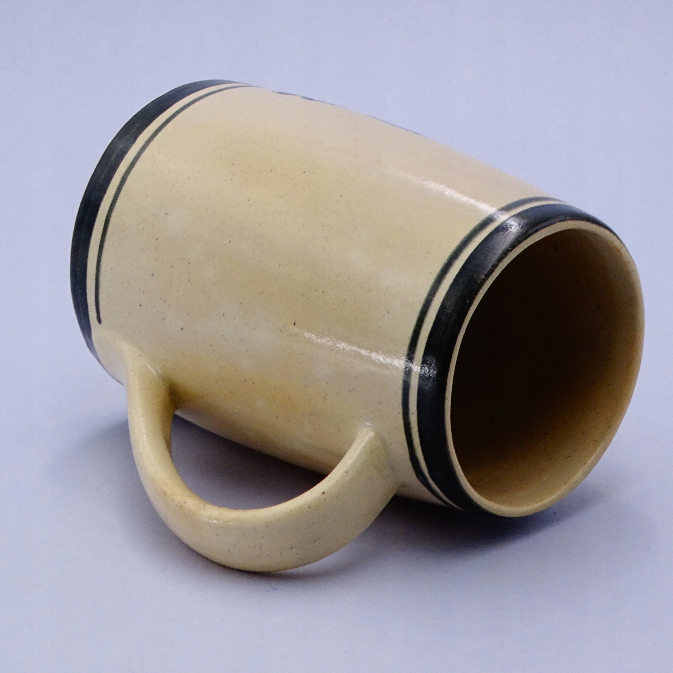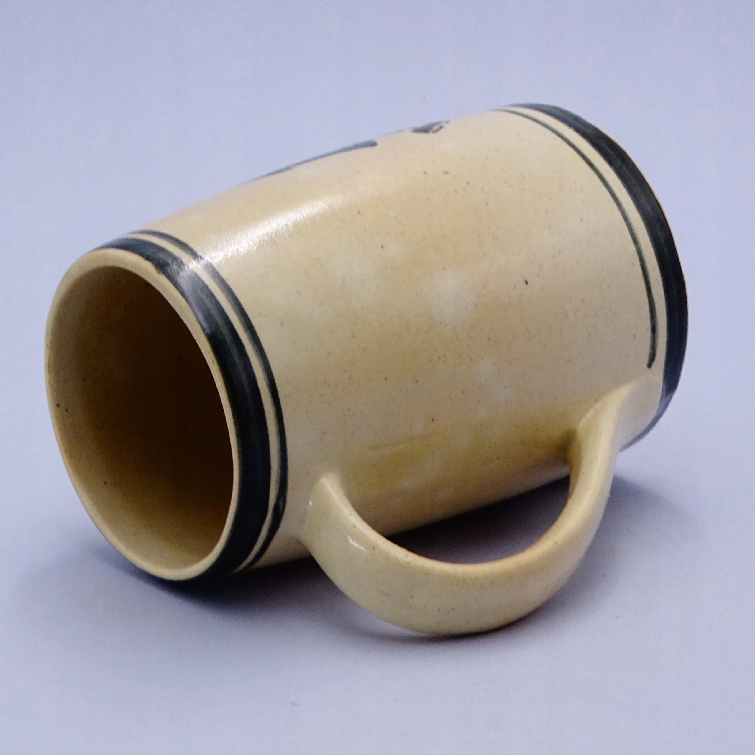 Bardzo ładny, stary, ręcznie malowany kufel / duży kubek ze szkliwionej ceramiki.