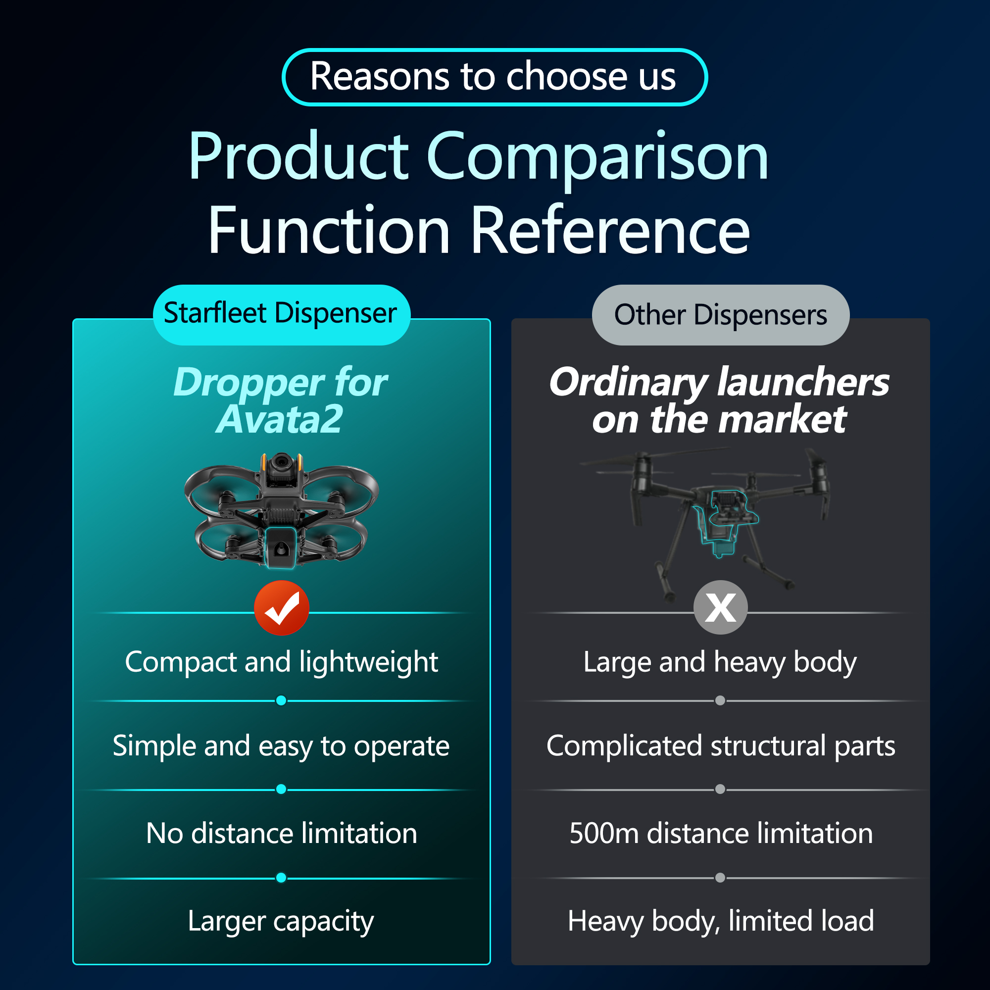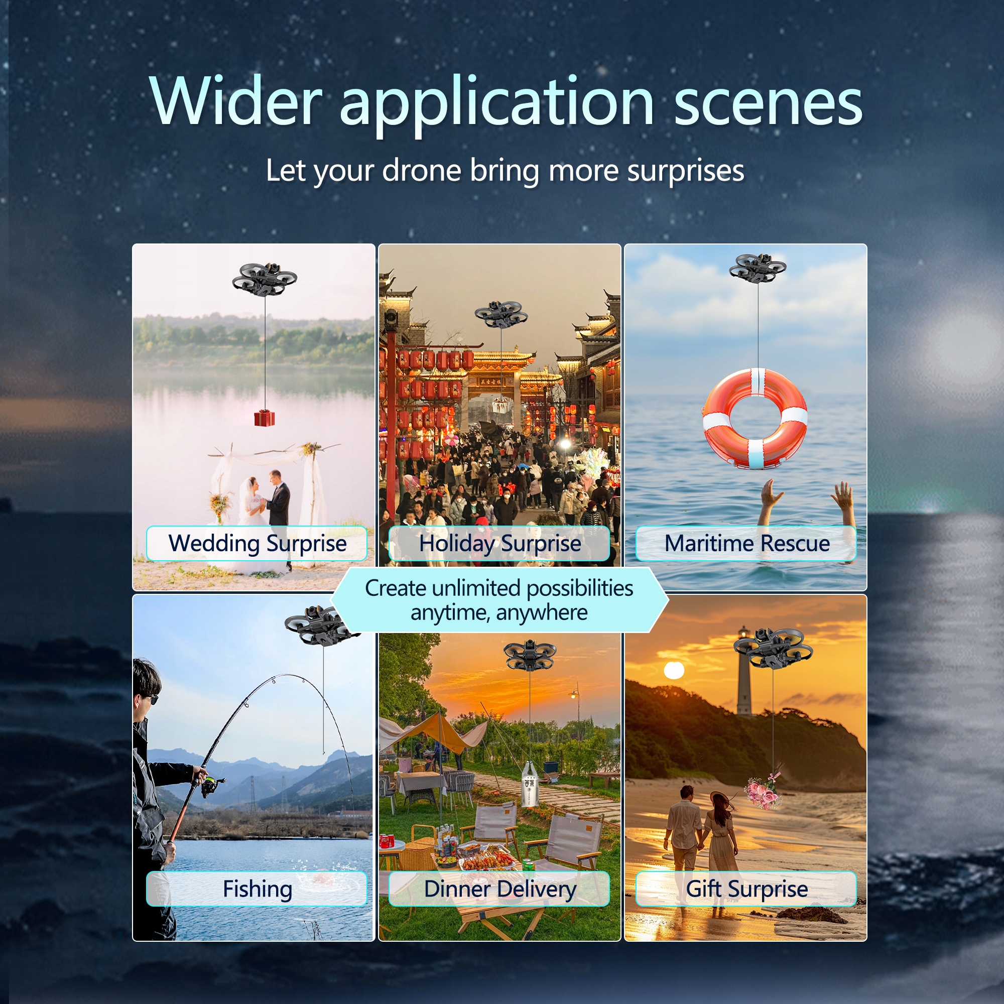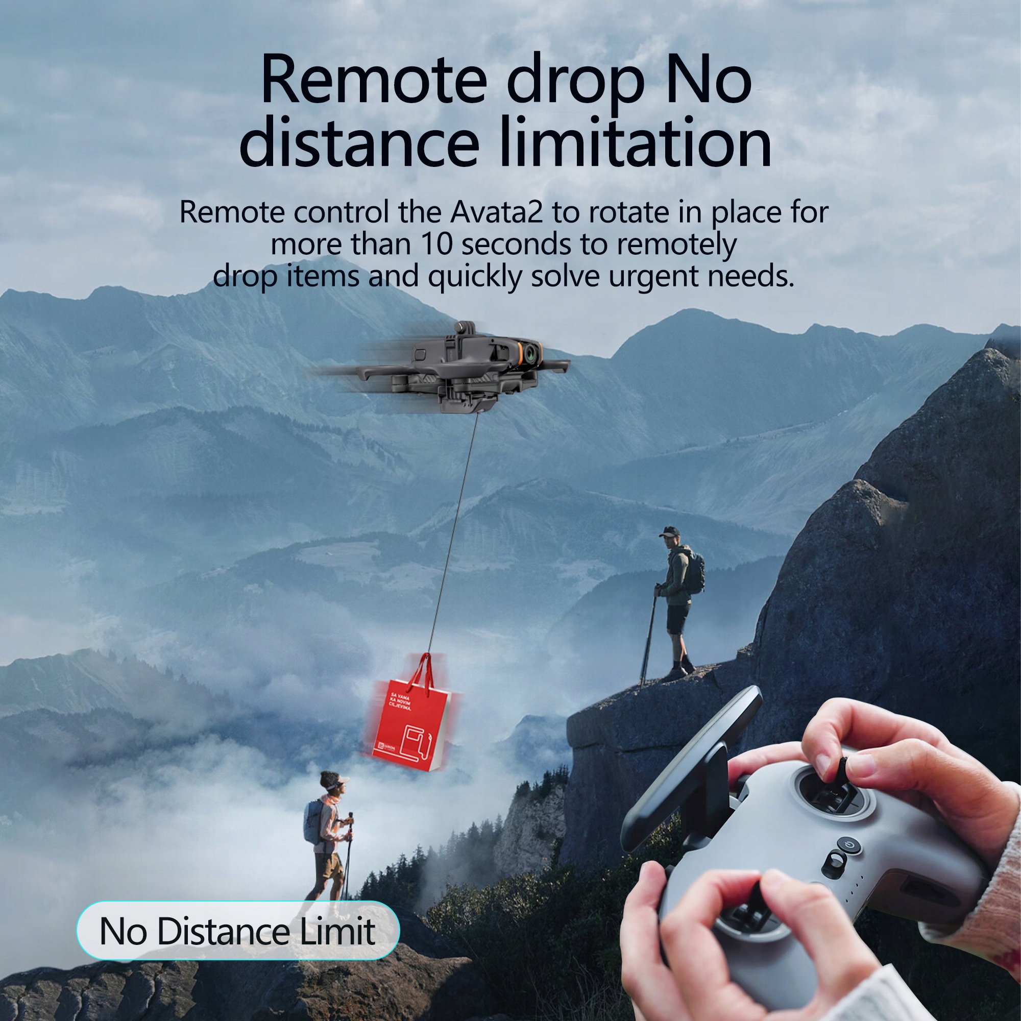 【Неограниченное расстояние доставки】10 с точного сброса. Устройство для Drop Avata 2 не требует дополнительного пульта дистанционного управления, а расстояние доставки такое же, как и расстояние пульт дистанционного управления дроном. Он запрограммирован так, чтобы дрон принимал фиксированное положение в диапазон дистанционного управления, для реализации доставки предметов в установленном точка.