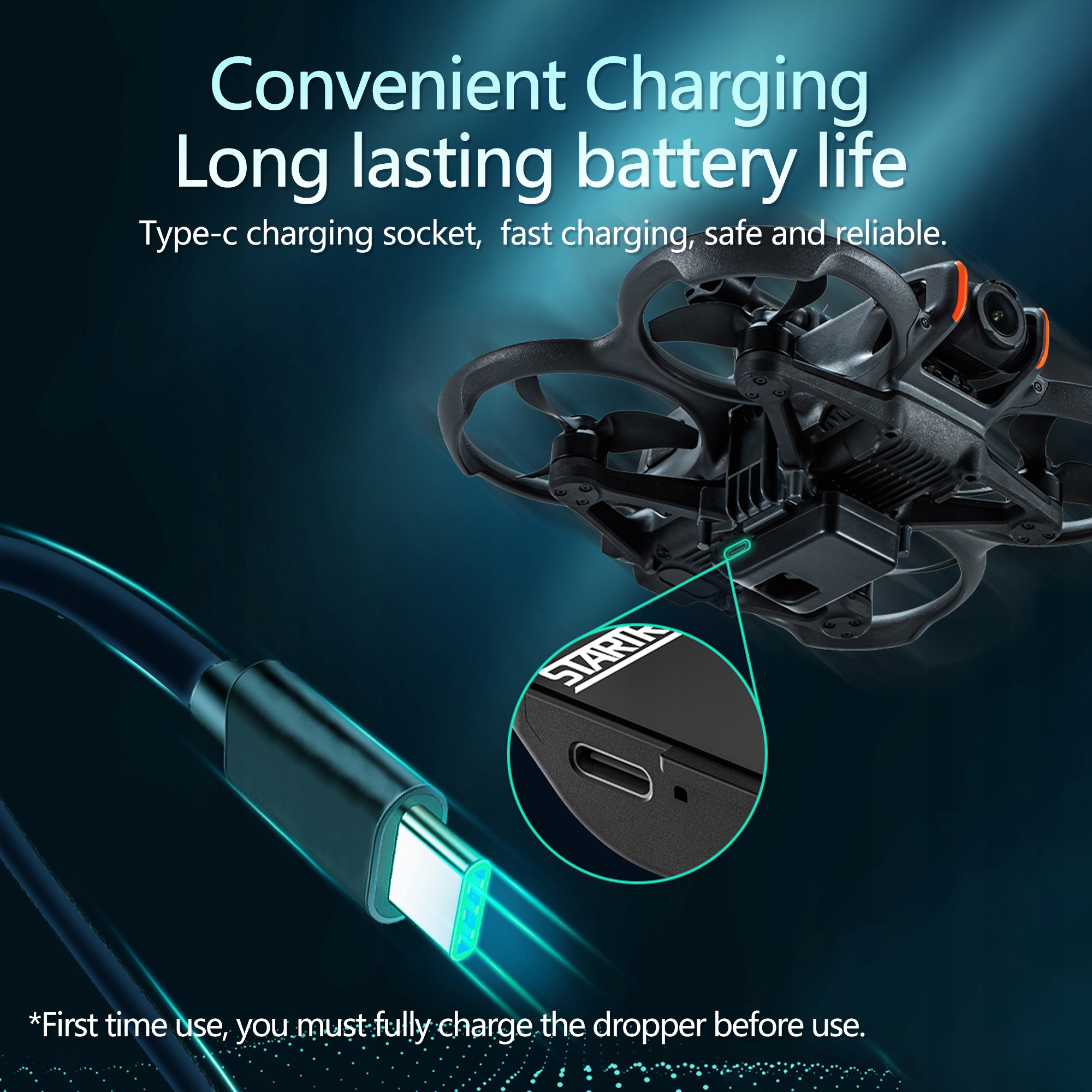 【Специально разработанная】эта система Airdrop Drone разработана специально для DJI Avata 2. Он прост в использовании, безопасен и не нарушает параметры полета. Устройство имеет встроенную аккумулятор емкостью 100 мАч, который заряжается всего за час, что обеспечивает более длительный срок службы использование.