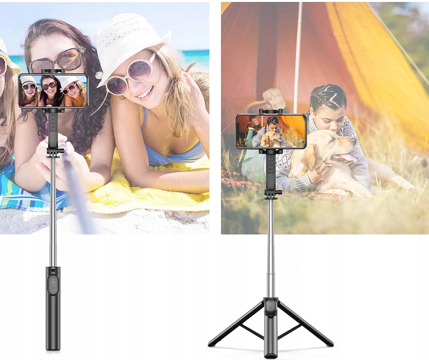 Ten wielofunkcyjny uchwyt selfie stick łączy w sobie solidność, stabilność i wszechstronność, zapewniając wysoką jakość ujęć zarówno przy robieniu zdjęć, jak i prowadzeniu transmisji. Dzięki wytrzymałej konstrukcji, idealnie sprawdzi się w różnych warunkach, zapewniając pewny uchwyt i łatwość użytkowania. Jego lekki, przenośny design pozwala na szybkie rozłożenie – wystarczy przekręcić, wysunąć i gotowe. Uchwyt może pełnić funkcję statywu, co czyni go wszechstronnym narzędziem, idealnym zarówno do zdjęć, jak i długich nagrań wideo.