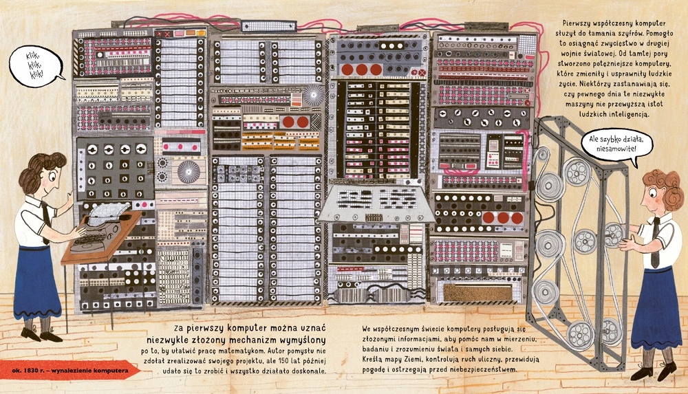„Historia wynalazków. Moja pierwsza książka o odkryciach” to kolejna część serii, w ciekawy i piękny sposób prezentującej naukowe zagadnienia. Doskonała dla dzieci, które wolą fakty od fikcji. Książka rozbudzi ciekawość młodszych czytelników, a dla nauczycieli i nauczycielek, rodziców, babć i dziadków będzie wsparciem w codziennych zmaganiach z pytaniami „A dlaczego...?”, „Po co...?”