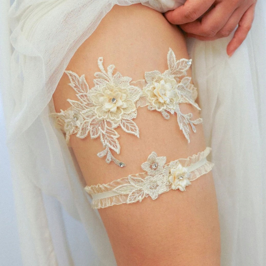 Coraz bardziej modne staje się noszenie dwóch podwiązek. Na zdjęciach poniżej prezentowana jest podwiązka z aktualnie oglądanej oferty w zestawie z drugą podwiązką dedykowaną do kompletu. Zestaw jest dostępny na innej aukcji.
