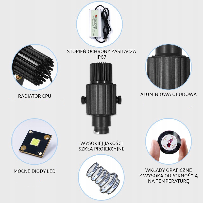 Projektor wyświetlać może dowolną grafikę. Prosimy o wcześniejszy kontakt w celu przygotowania pliku do produkcji.