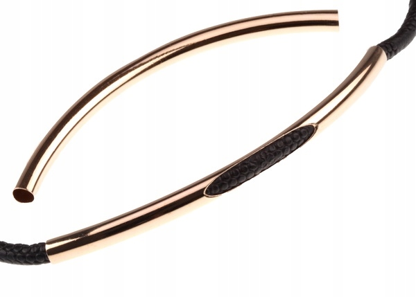 Opis: Element ozdobny RURKA DYSTANSOWA GŁADKA w kształcie ŁUKU z PODŁUŻNYM OTWOREM NA RZEMIEŃ (widocznym na zdjęciu). Produkt świetnie nadaje się jako przekładka do RZEMIENIA. Doskonały dodatek np. w naszyjniku. Produkt przeznaczony do wyrobu biżuterii. Wyrób ANTYALERGICZNY - nie zawiera niklu ani ołowiu. UWAGA!: Widoczny na zdjęciu rzemień służy jedynie zaprezentowaniu przykładu użycia rurki i nie jest przedmiotem sprzedaży!