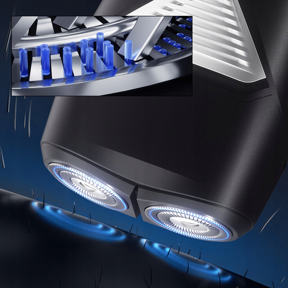 Niezależnie pływające głowice tnące, w elastyczne głowice, doskonale dopasowują się do krzywizn i owalu twarzy i szyi, gwarantując nie tylko precyzyjne golenie, ale także niezrównane uczucie wygody.