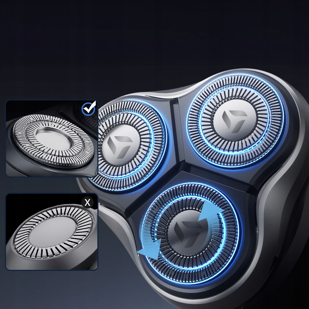Независимо плавающие режущие головки, полностью гибкие головки вращаются на 360, идеально они соответствуют изгибам и овалам лица и шеи, гарантируя не только точное бритье, но и также непревзойденное чувство комфорта.