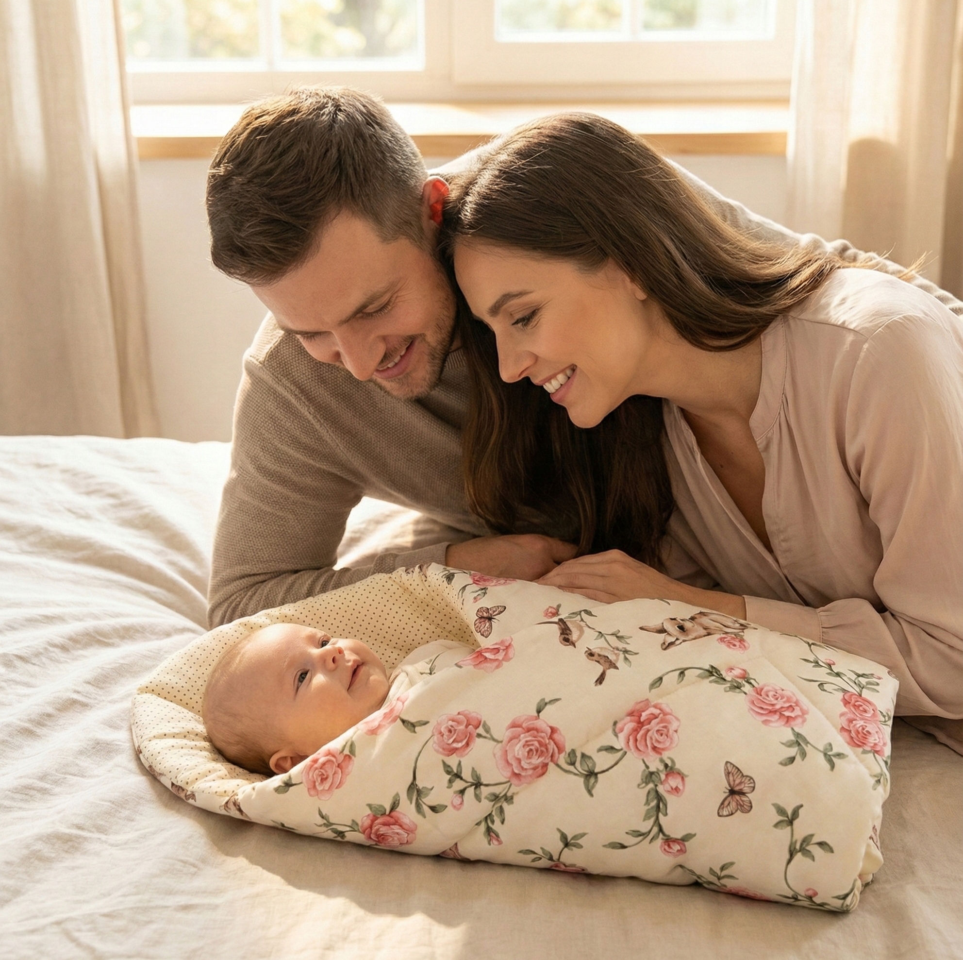 Becik milutko otuli nowo narodzonego bobaska dając mu poczucie bezpieczeństwa. Nasz rożek może także pełnić rolę dwustronnej kołderki, kocyka niezbędnego w podróży lub podczas pikniku.