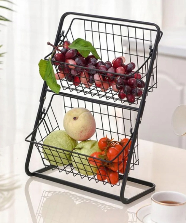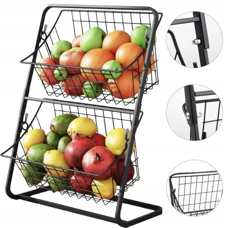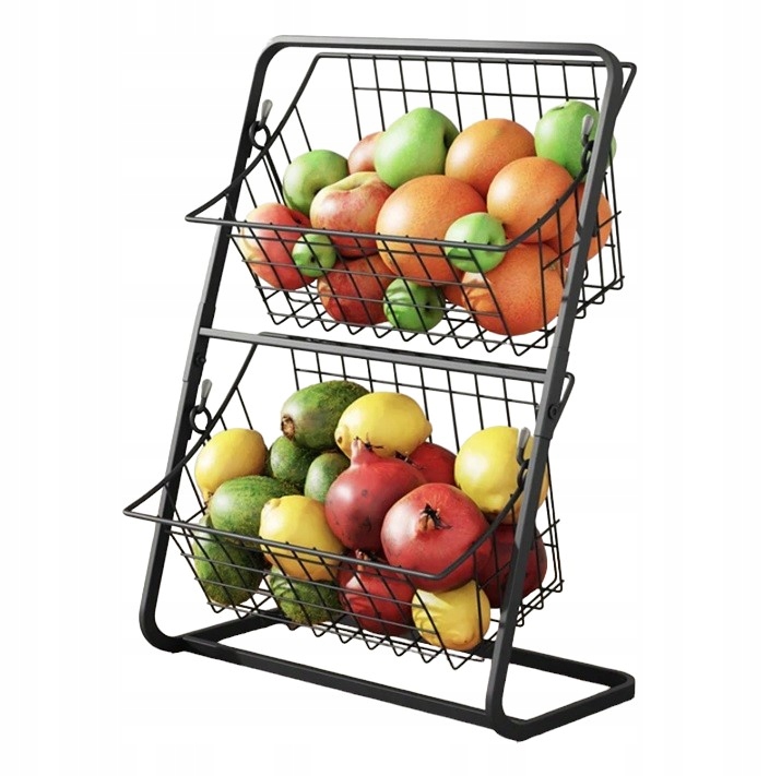 ✅ DWUPOZIOMOWY - Metalowy, dwupoziomowy koszyk, posłuży do przechowywania owoców oraz warzyw.