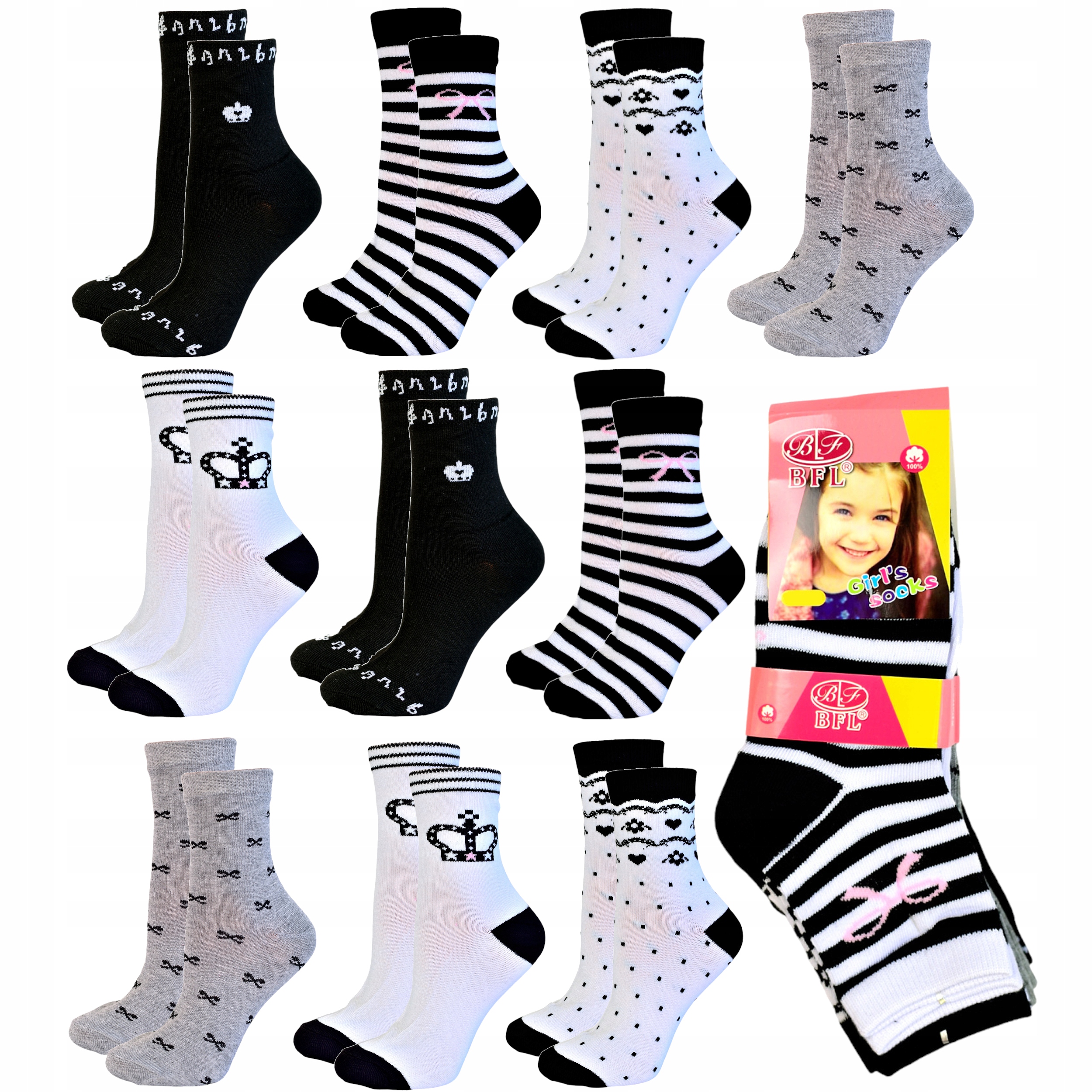 Skarpetki SKARPETY DZIEWCZĘCE dziecięce bawełniane BAWEŁNA 10-pak 35-38