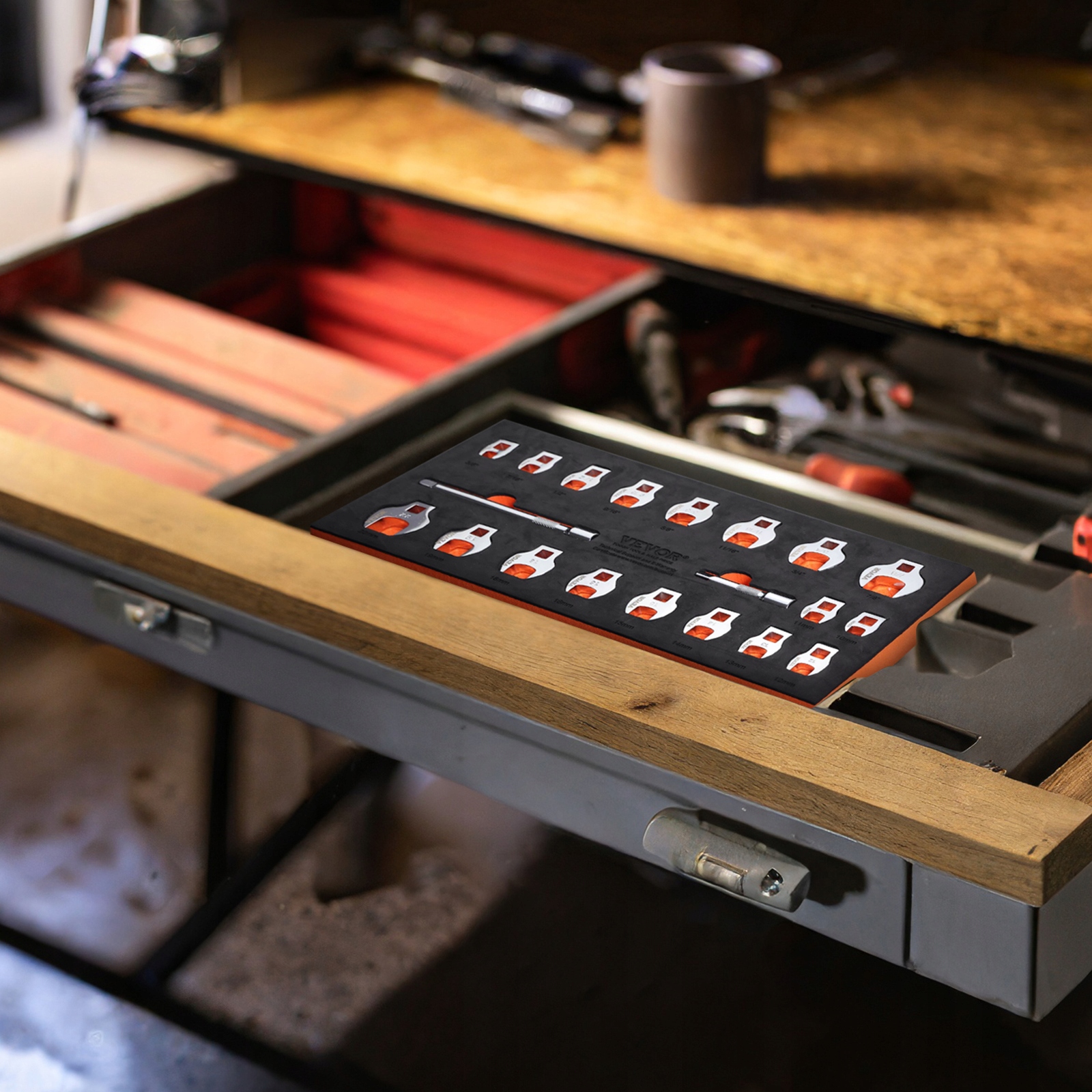 Wyposażony w solidną tacę EVA, ten zestaw kluczy do stóp wron upraszcza organizację, transport i przechowywanie. Zarówno klucze, jak i taca są oznaczone rozmiarami, dzięki czemu bez wysiłku można wybrać odpowiednie narzędzie i zwiększyć wydajność naprawy.
