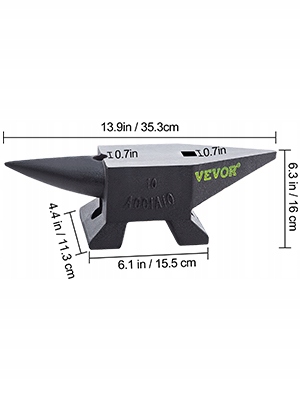 Solidna, łukowata podstawa zapewnia stabilność kowadła o wadze 10 kg (22 funty) podczas obróbki metalu lub kowalstwa.