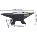 Solidna, łukowata podstawa zapewnia stabilność kowadła o wadze 10 kg (22 funty) podczas obróbki metalu lub kowalstwa.