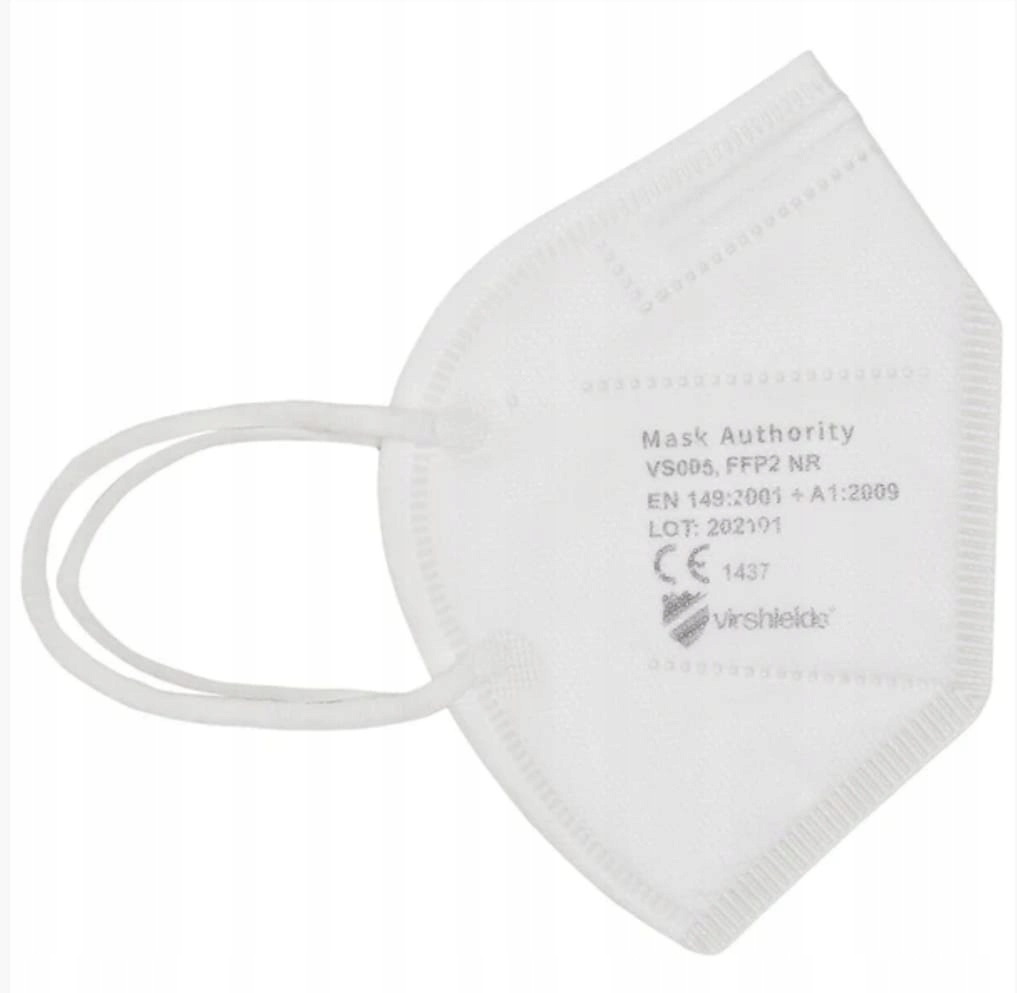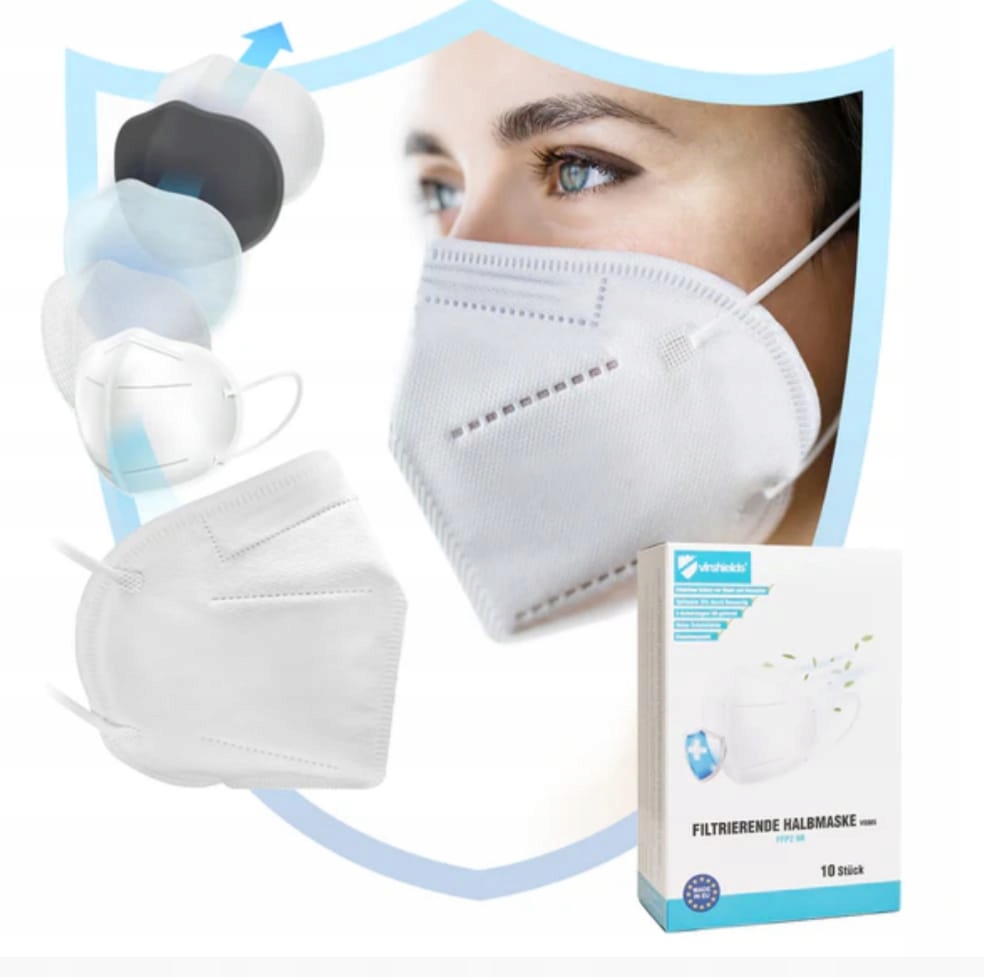 10x 5-warstwowe maski FFP2 w kolorze białym. Do codziennego użytku jednorazowego.