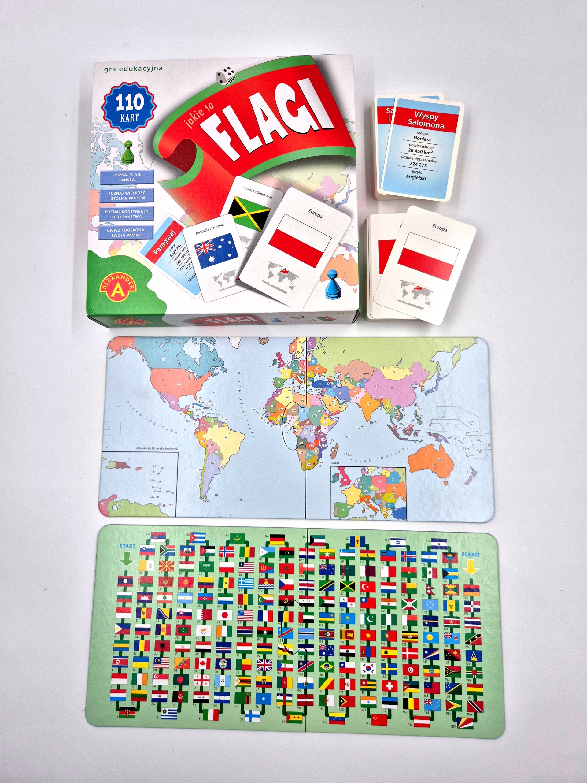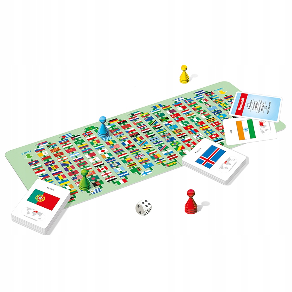 "Jakie to flagi?" to edukacyjna gra planszowa, która przynosi radość i rozwija umiejętności każdego uczestnika.