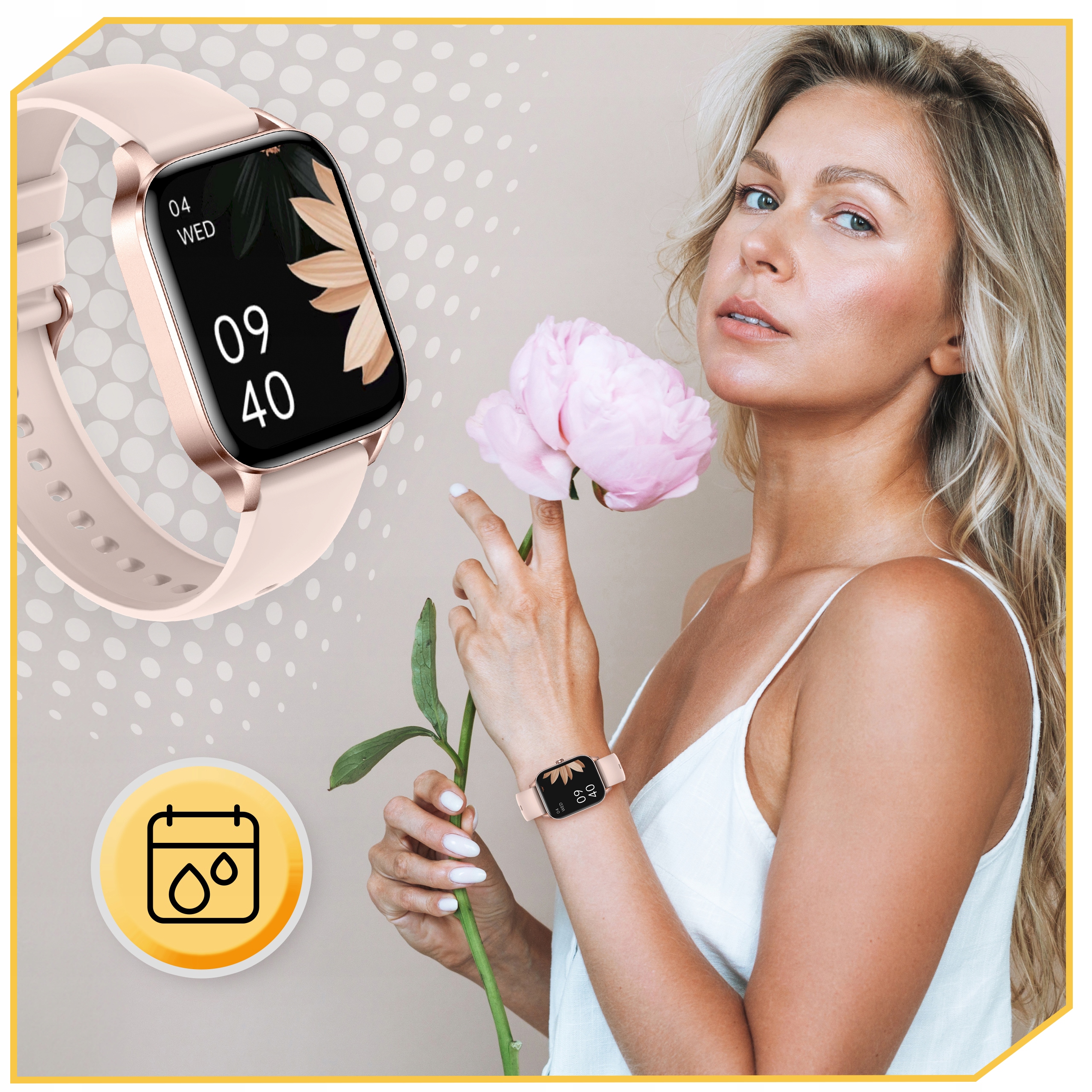 Po wprowadzeniu danych do aplikacji możesz śledzić swój cykl menstruacyjny za pomocą zegarka. Nasz smartwatch poinformuje Cię, w jakim fazie cyklu obecnie się znajdujesz i kiedy powinnaś spodziewać się okresu.