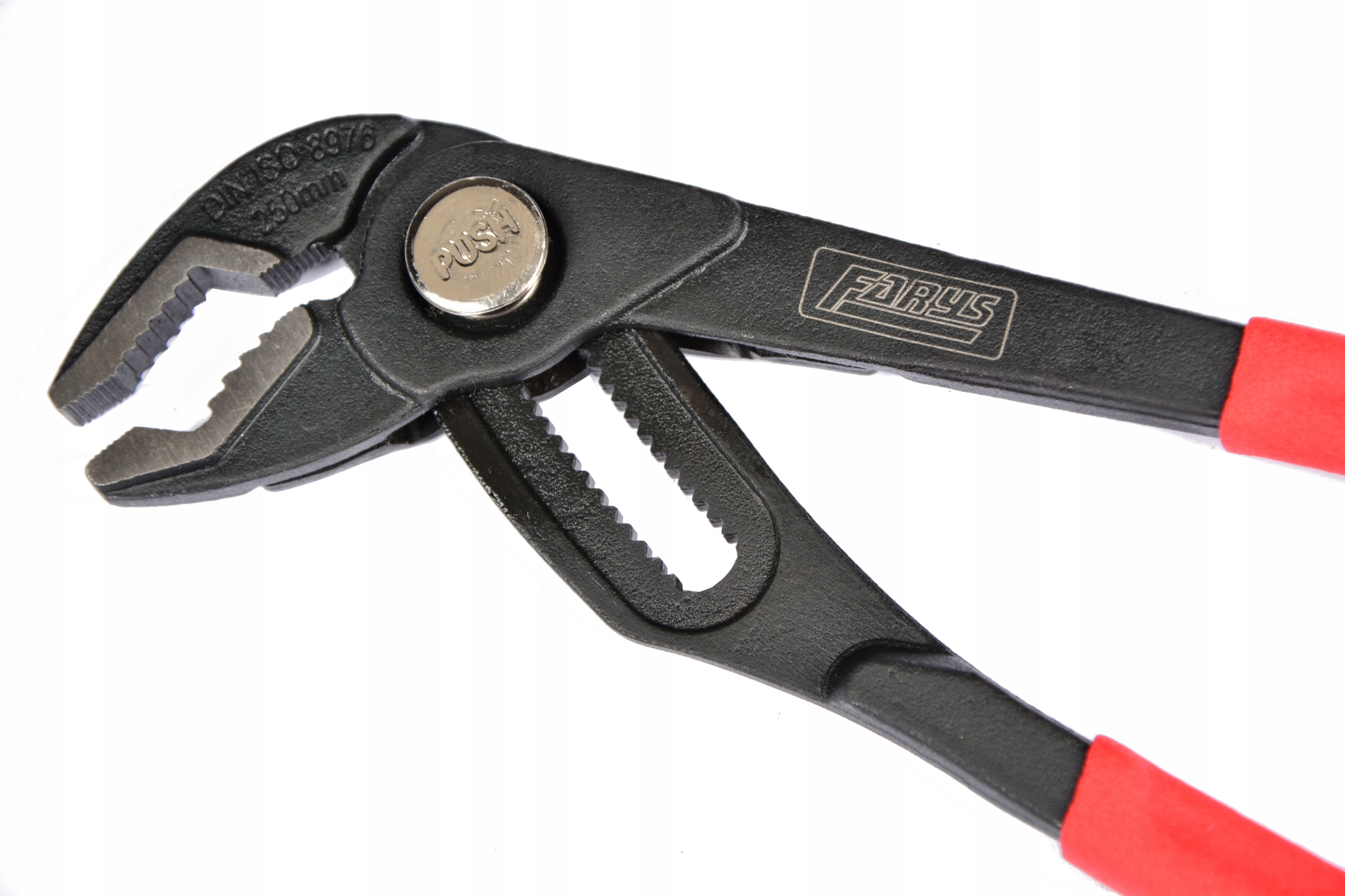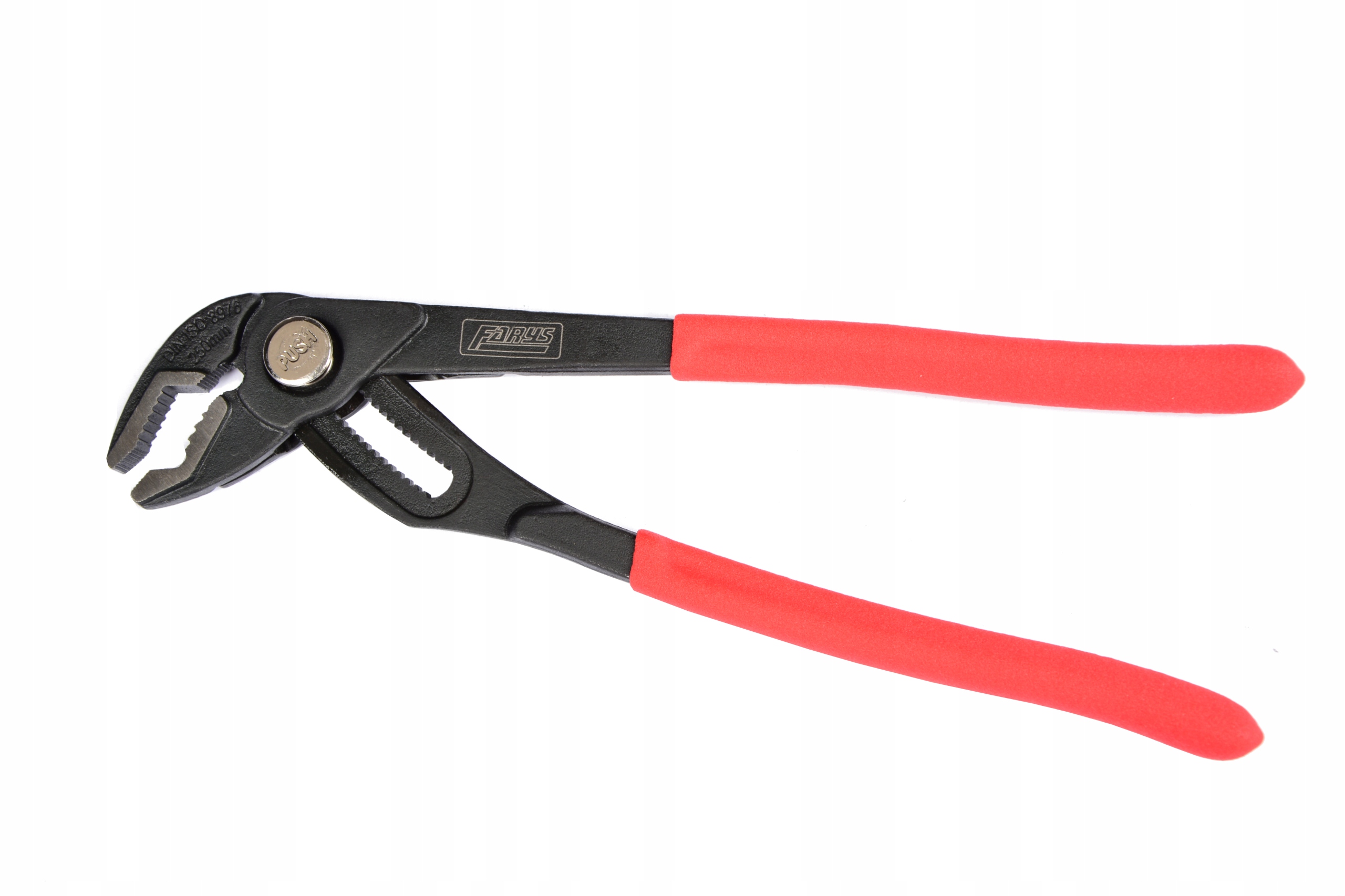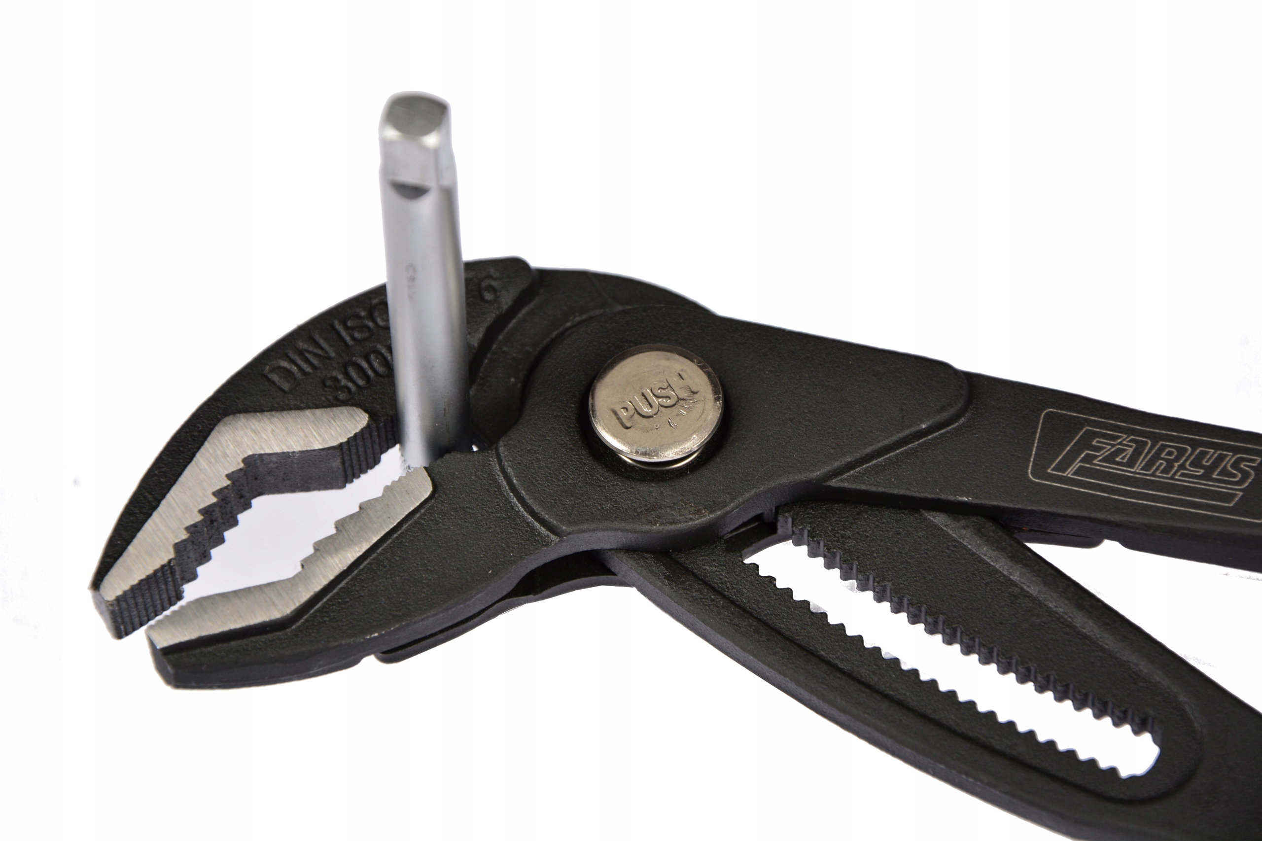 Profesjonalne uniwersalne szczypce nastawne firmy FARYS do rur oraz innych elementów złącznych np. drążków kierowniczych. Przydatne do wszelkiego rodzaju prac instalacyjnych i montażowych np. w warsztacie, serwisie.