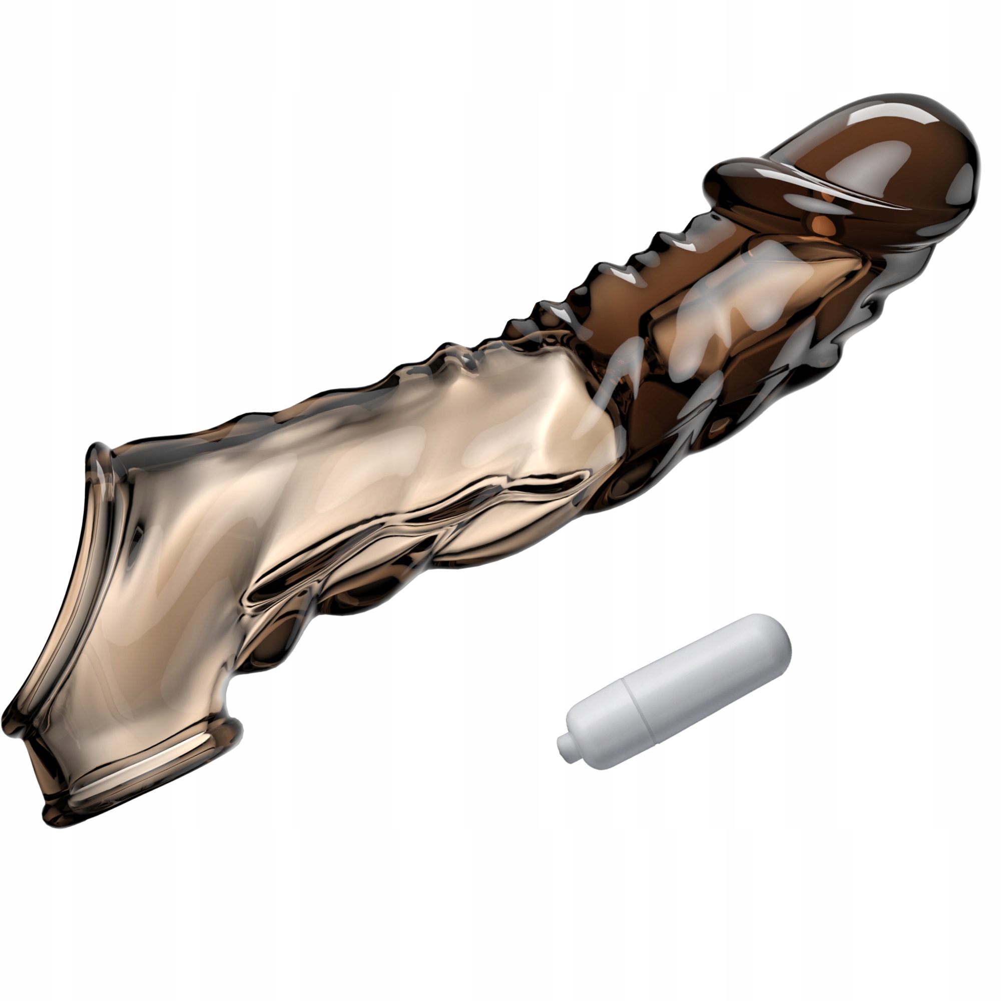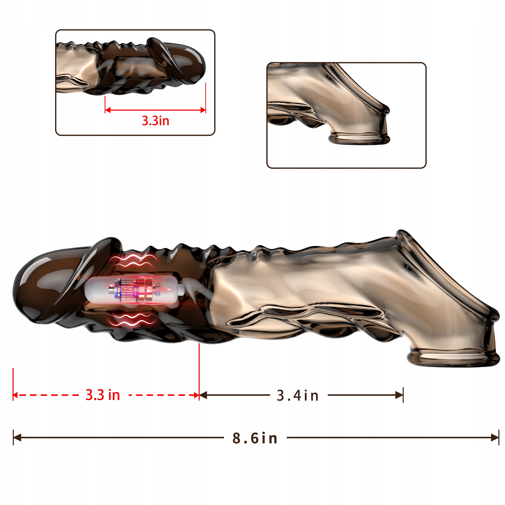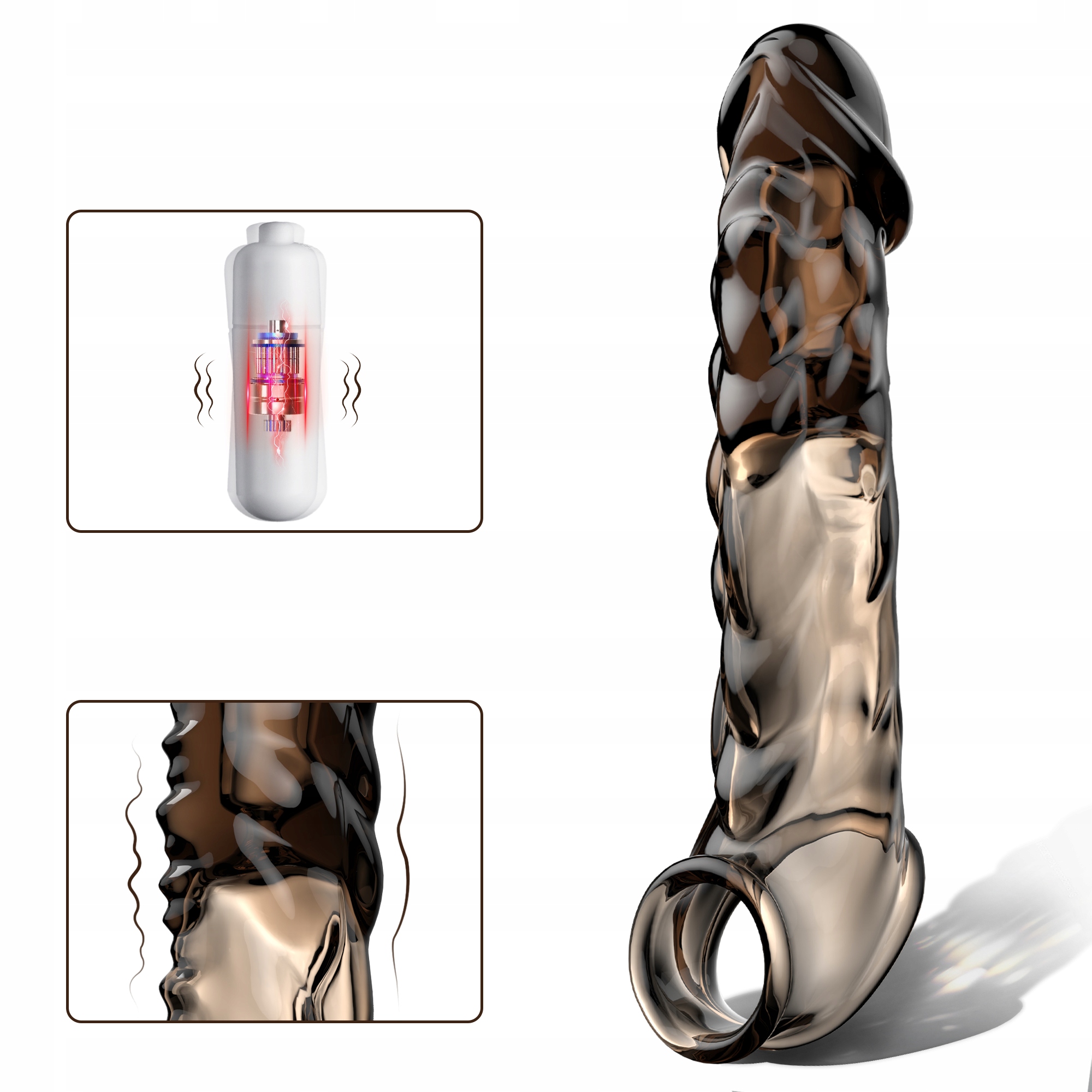 Ten wibrujący rękaw na penisa natychmiast zwiększa Twój rozmiar i wytrzymałość. Miękki, rozciągliwy TPE pasuje do długości do 17 cm, dodając obwodu i intensywności przy każdym pchnięciu.