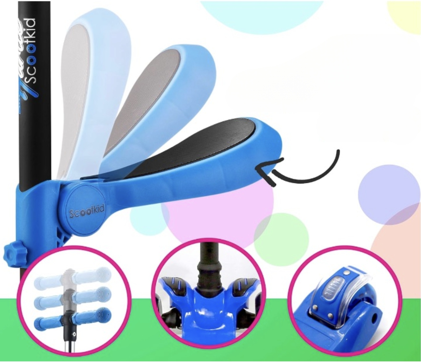 Очень широкая доска для обе ноги. Оснащен колесами 120 мм/80 мм, 2 передними и 1 задними колесами, которые плавно скользят даже на неровных поверхностях.