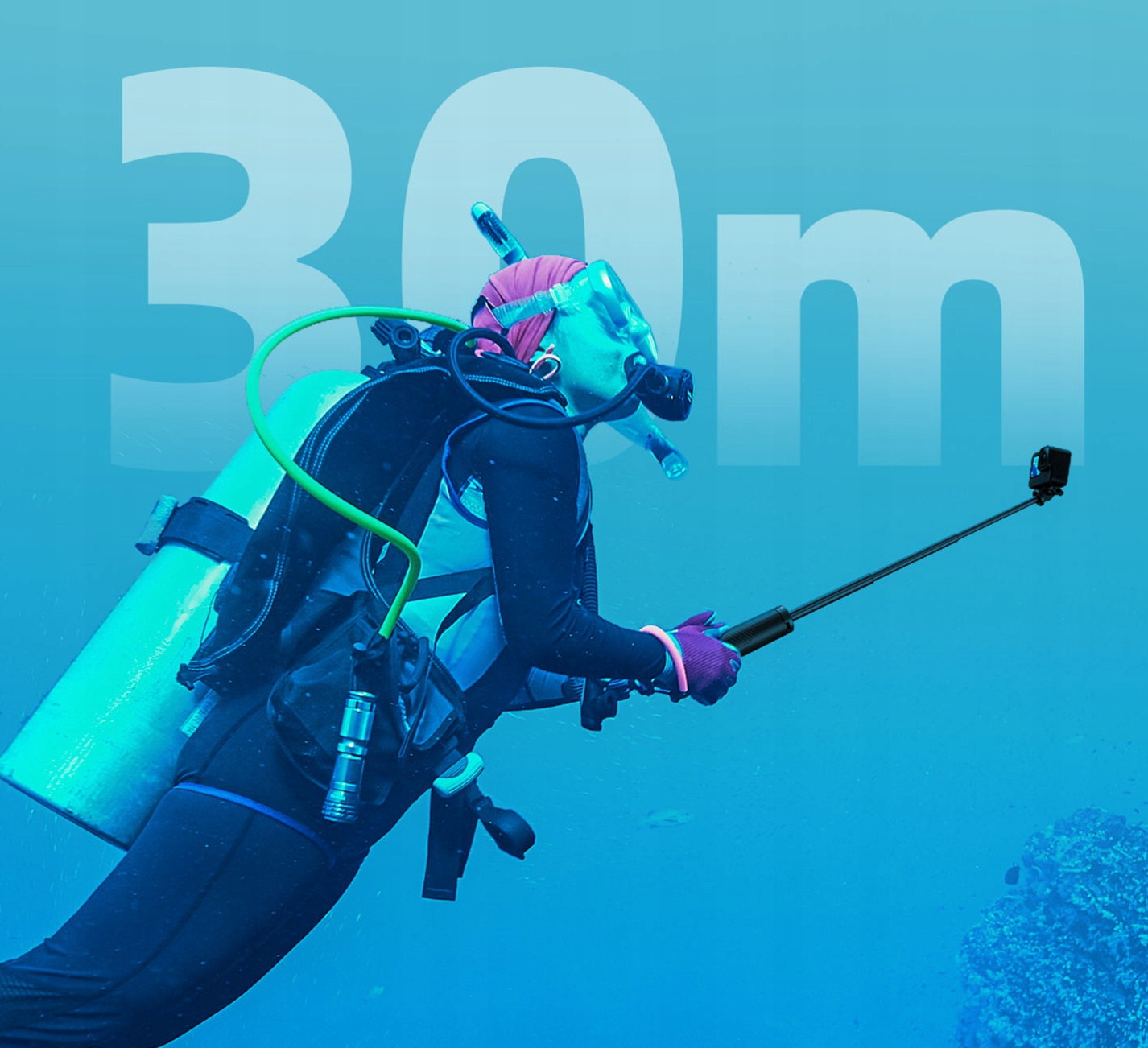 Stabilne nagrywanie pod wodą: Jako kij wypornościowy, uchwyt przyjmuje niezależną konstrukcję z trzema nogami, która umożliwia nagrywanie płynnych filmów pod wodą.