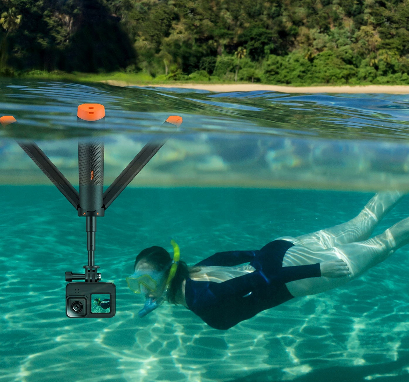 Wodoodporność 30 m: Wodoodporny do głębokości 30 metrów, ten statyw do selfie może towarzyszyć Ci w eksploracji podwodnego świata. Czarno-pomarańczowy, przyciągający wzrok design, łatwy do zauważenia, nawet jeśli przypadkowo upuścisz go pod wodę.