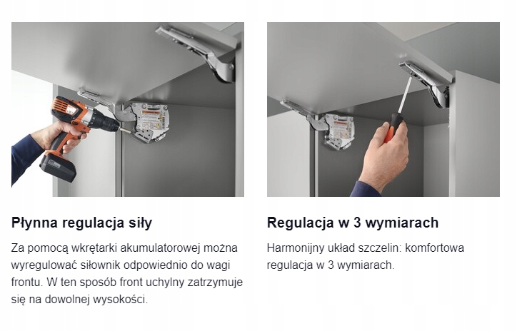 ✅System umożliwia płynne zatrzymanie frontu szafki w dowolnej pozycji, zapewniając pełną kontrolę nad kątem otwarcia.