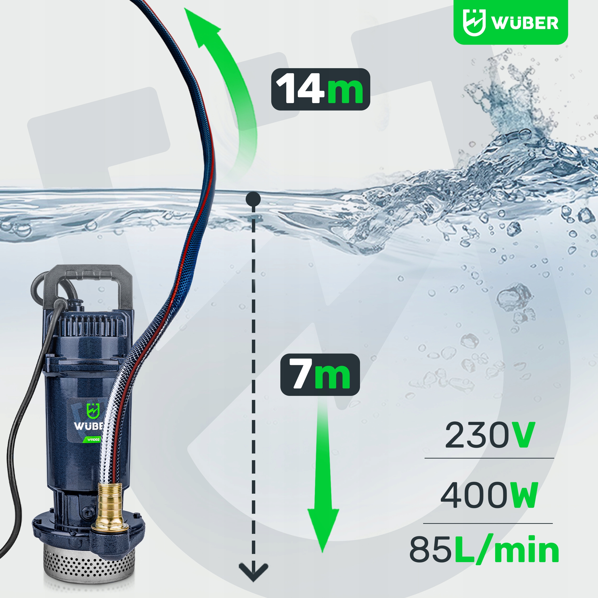 ✅ Pompa jest w stanie bez problemu podnieść strumień wody aż do 14 m oraz można ją zanurzyć na głębokość aż 7m!