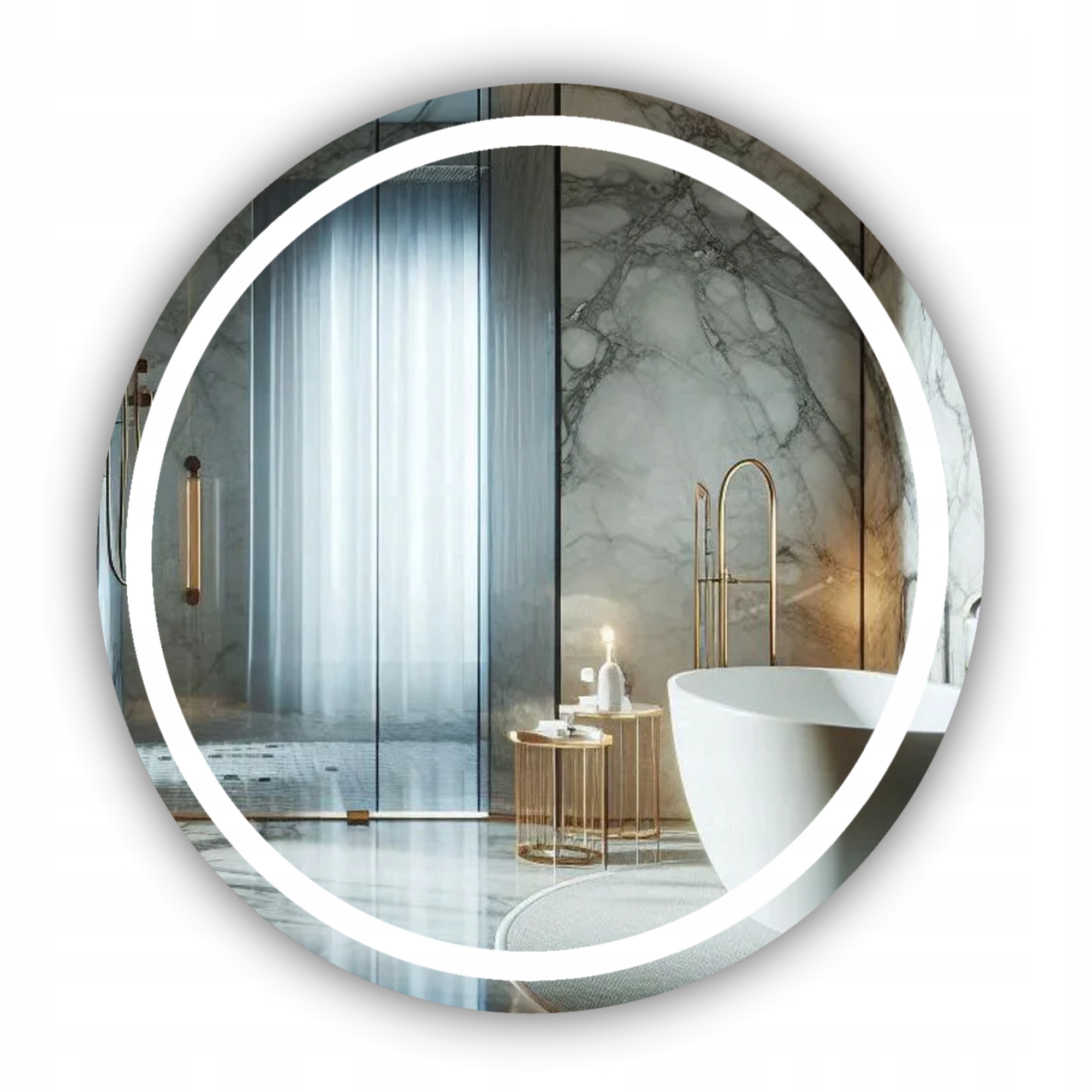 Nowoczesne lustro okrągłe podświetlane LED 100 FI wykonane ze szkła wysokiej jakości o grubości 4mm. Polerowane i szlifowane krawędzie.