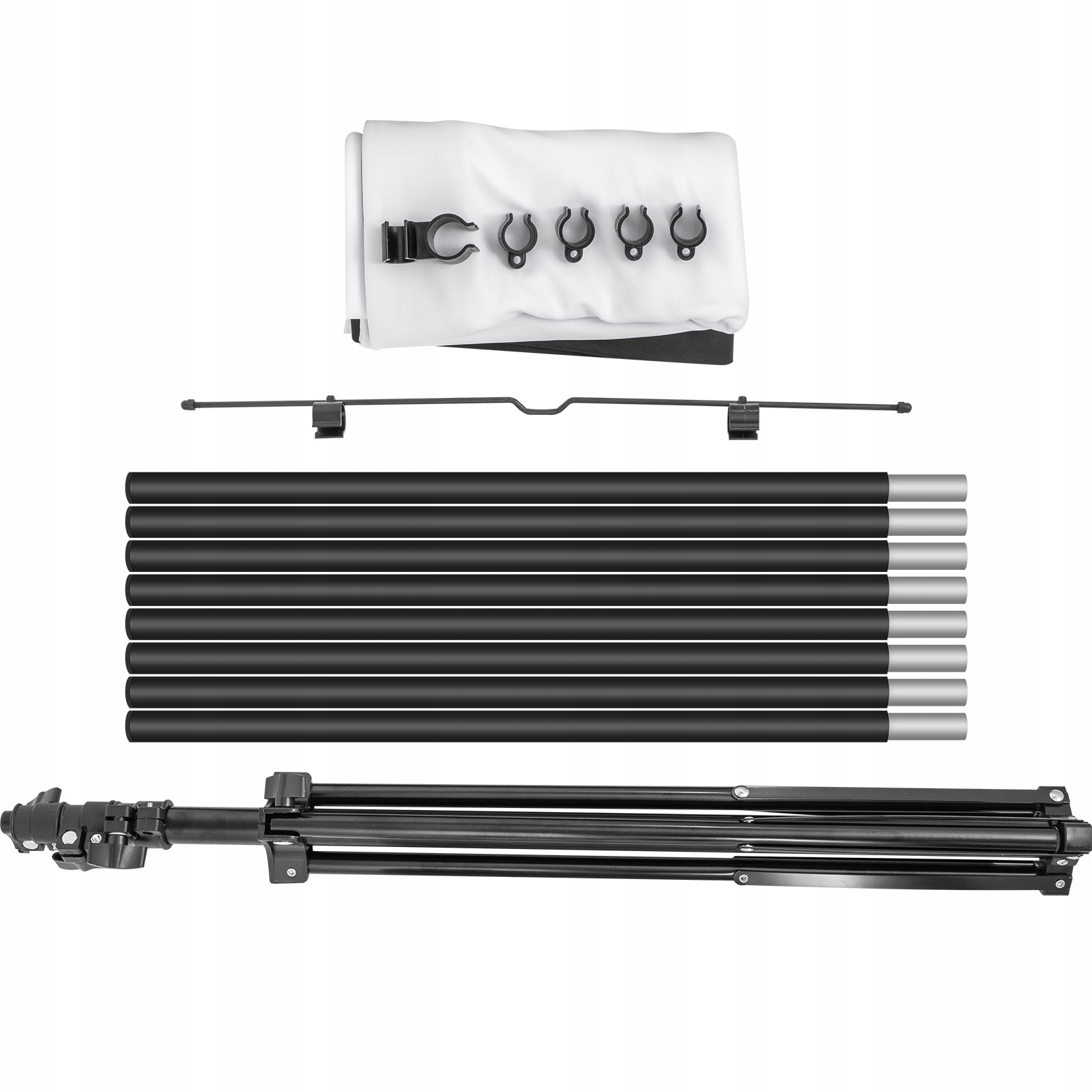 Ten ekran projekcyjny ze stojakiem można łatwo skonfigurować w kilku krokach i bez użycia narzędzi. Drążki napinające powodujące, że montaż ramy jest dziecinnie prosty, a dwa górne zaciski ekranu bezpiecznie na miejscu.