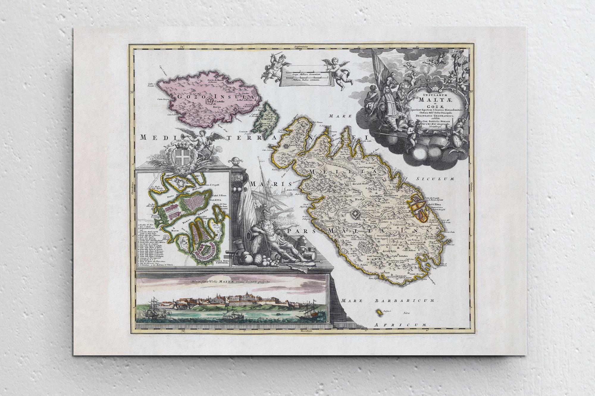 Reprodukcja mapy Malty i Gozo z roku ok 1715, autorstwa Johann Baptis Homann.
