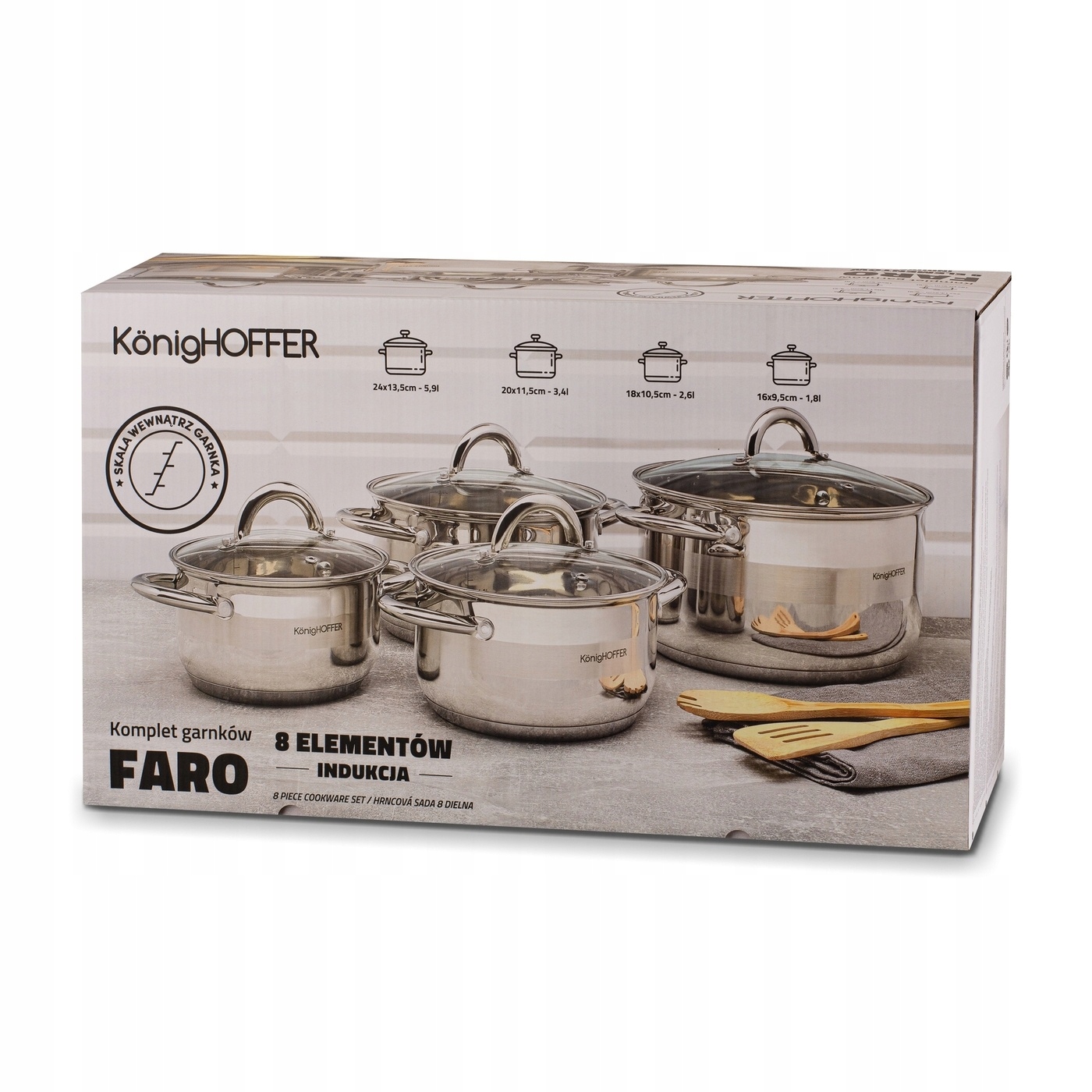 Корпус кастрюли Konighoffer Faro 1,6 / 2,6 / 3,4 / 5,9 L изготовлен из нержавеющей стали, которая он легко чистится и отлично защищает посуду от теплового повреждения или механическим. Приготовленные на несколько дней блюда можно без опасений оставить в посуде и хранить. В этом случае надежное исполнение идет рука об руку с очень современным дизайном и высоким уровнем функциональности. Отмеряя воду для супа или лапши, он поддержит вас помещенная внутри Горшков Faro шкала литража. Гарантия безопасной и стабильной переноски они дают прочные заклепки из нержавеющей стали. Также в комплект входят стеклянные крышки с металлическим разглагольствование, клепаная ручка и вентиляционное отверстие. В посуде можно тушить пищу. Вы сделаете это на любой тип плиты благодаря слоистому дну. Вы экономите тепло более эффективно, сокращаете время приготовление еды и экономия энергии. Более того, вы снабдите свою домашнюю кухню набором кастрюль ржавчины в течение многих лет.