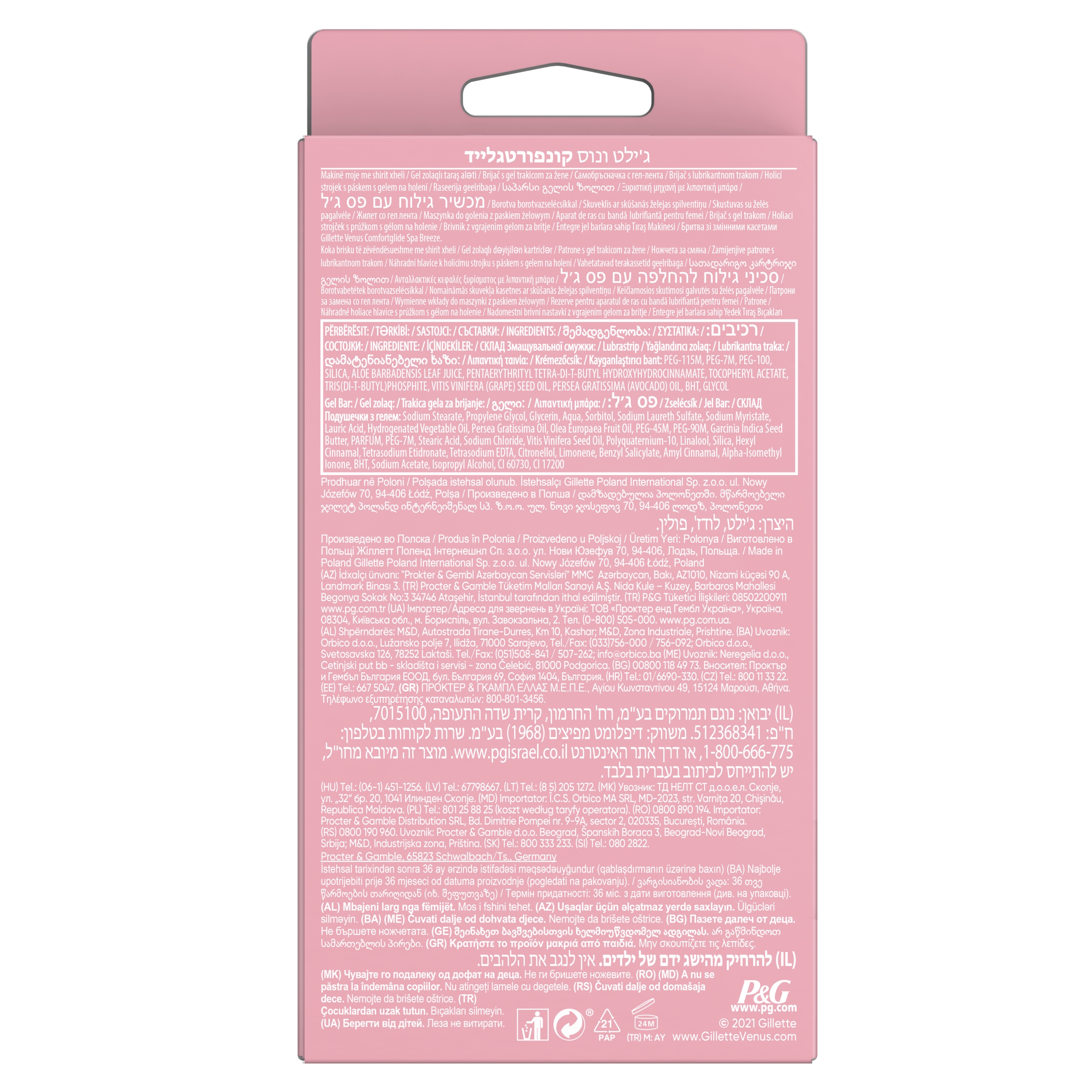 Ostrza maszynki do golenia dla kobiet Gillette Venus zostały zaprojektowane z myślą o kobiecym ciele. Maszynki do golenia dla kobiet Gillette Venus Comfortglide Spa Breeze mają 3 ostrza, które zapewniają gładkie i dokładne golenie. Ostrza wymienne do maszynki do golenia są wyposażone w paski żelowe, które uwalniają balsam do ciała o zapachu białej herbaty, ułatwiając poślizg i zapewniając komfort. Obrotowa konstrukcja dopasowuje się do konturów ciała. Ostrza wymienne Gillette Venus pasują do wszystkich rączek maszynek do golenia Gillette Venus (z wyjątkiem Gillette Simply Venus i Gillette Venus do golenia włosów łonowych i skóry).