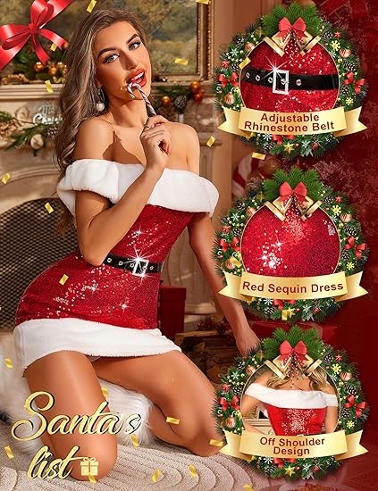 Kontury na ciele odsłaniające seksowne krągłości, nadają mu świątecznego uroku - idealne na Boże Narodzenie, święta i imprezę noworoczną! (Uwaga: nie zawiera czapki świątecznej)
