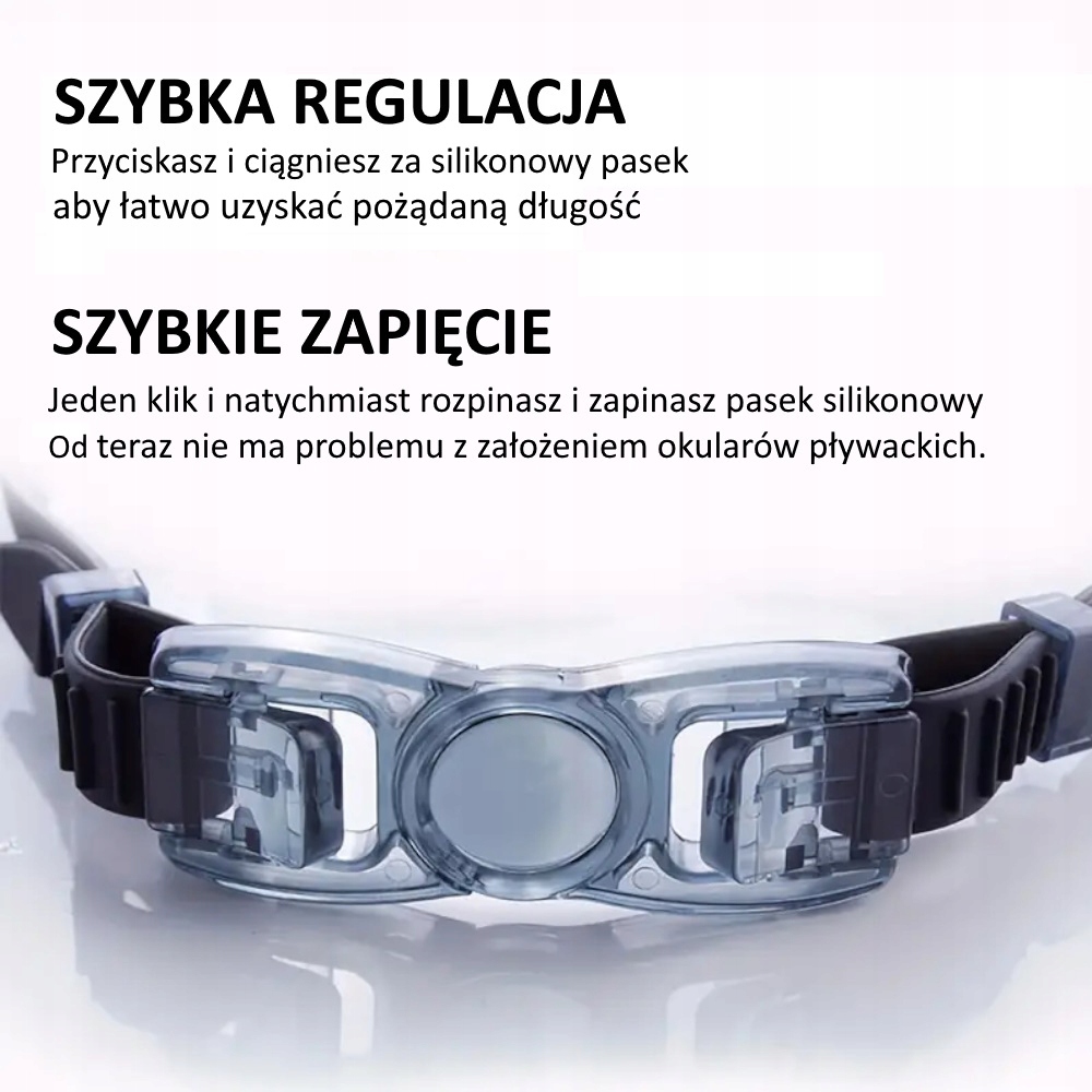 ZATYCZKI DO USZU - ten model okularów do wody posiada ZATYCZKI do USZU przymocowane do silikonowego paska. Teraz masz pewność, że Twoje zatyczki do uszu będą zawsze przy okularach. Dla osób, które nie korzystają z zatyczek, mogą je w łatwy sposób odciąć.