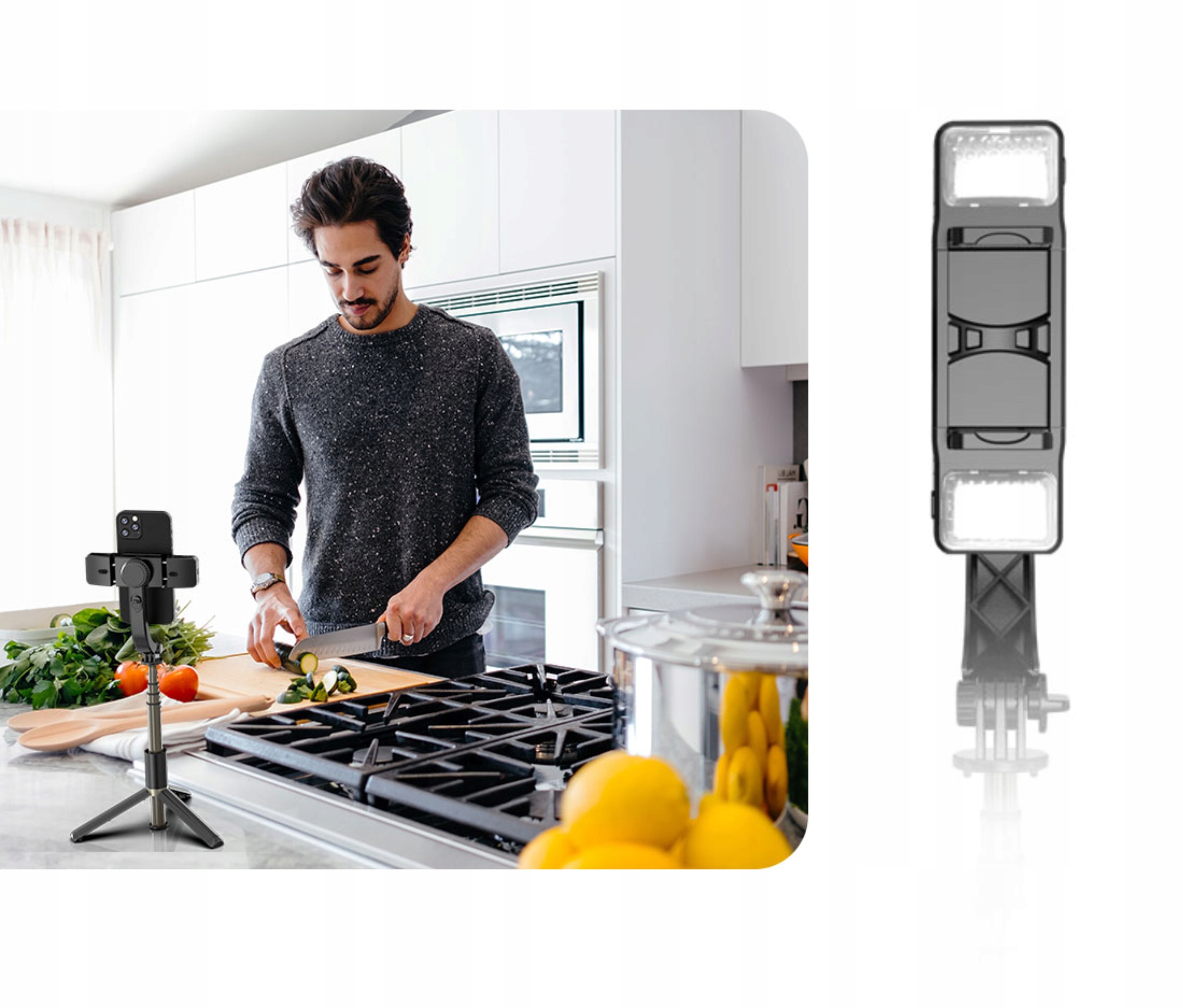 Niezwykle praktycznym design, który pozwala na jego łatwe składanie oraz teleskopowe wydłużanie. Po złożeniu staje się kompaktowy, co ułatwia jego przechowywanie i transport, idealnie sprawdzając się w podróży. Natomiast możliwość wydłużenia aż do 758 mm pozwala na uzyskanie szerszych kadrów oraz wygodne nagrywanie z większej odległości, co jest przydatne podczas filmowania krajobrazów, selfie czy grupowych ujęć.