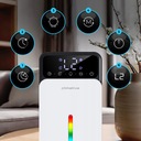 Urządzeniem można wygodnie sterować manualnie dzięki intuicyjnemu panelowi dotykowemu. Panel umożliwia łatwe dostosowanie ustawień, zapewniając pełną kontrolę nad poziomem wilgotności w pomieszczeniu.