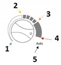 Заводские настройки контроллера : установить диск в режиме „Авто”, а переключатель режима в положение комфорт . Включите контроллер переключателя основной ( поз. 1 ) - индикатор статуса работы начнет быстро мигать оранжевым и если режим „Авто” будет загружен погаснет. Драйвер устанавливается на заводские значения : комфорт =19C, уменьшение =15,5 C в Соответствии с алгоритмом : уменьшение = комфорт - 3,5 с При установке выключателярежима в положение комфорт, индикатор режима загорается на зеленый цвет, что 6-sta секунду. ( с загрузки режим индикатор статуса работы быстро мигает красным светом ). При установке выключателя режима в положение " снижение индикатор режима горит зеленым в течение 5s после чего гаснет на 1с. ( с загрузки режим индикатор статуса работы быстро мигает зеленым цветом ). Каждое изменение положения переключатель режима вызывает считывание установленного режима по истечении прибл. 1 минут.