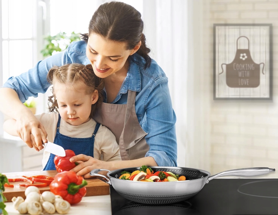 ➡️ ODPORNY NA ZARYSOWANIA: Wok ze stali nierdzewnej ma wypukły, teksturowany wzór w kształcie kompozytu plastra miodu, który tworzy wyjątkowo odporną na zarysowania powierzchnię, co pozwala na używanie metalowych utensyliów. Gotuje jak stal nierdzewna, ale z łatwością czyszczenia nieprzywierającej powierzchni.