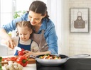 Profesjonalny wok z nieprzywierającą powłoką wyposażony jest w przezroczystą pokrywkę ze szkła hartowanego z mocnym stalowym rantem, który zatrzymuje ciepło i wilgoć. Bezpieczny do użytku na kuchenkach gazowych, elektrycznych, ceramicznych oraz indukcyjnych.