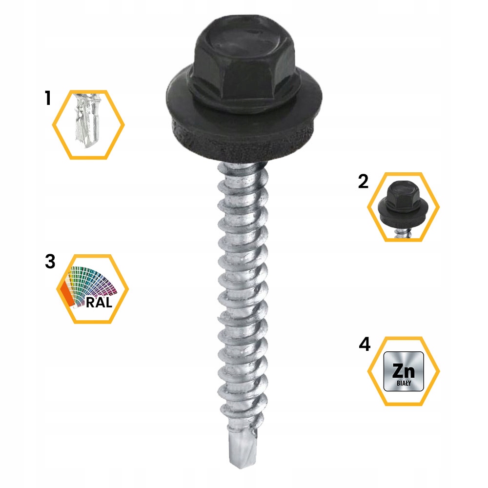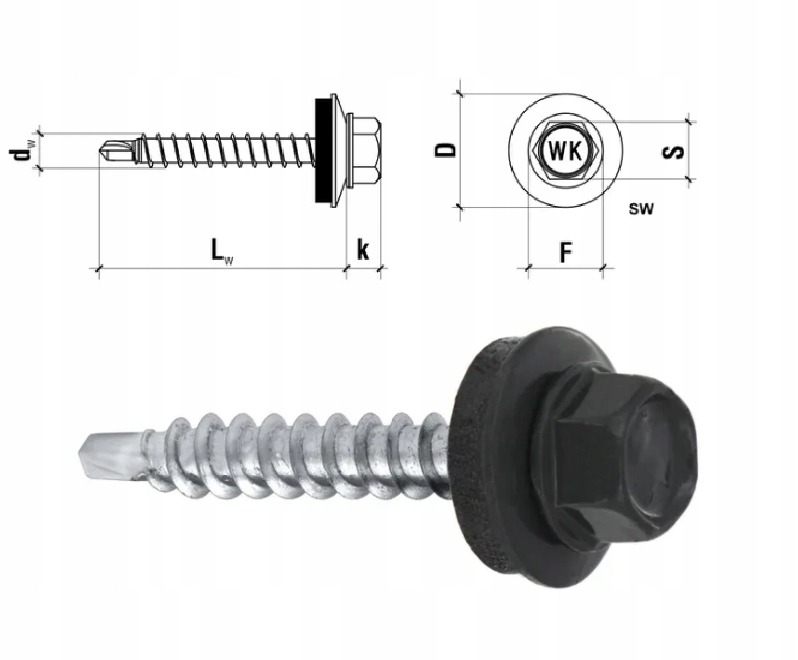 Wkręt samowiercący marki Wkręt-met z podkładką EPDM wykonany w powłoce cynkowej do mocowania blach, blachodachówki i obróbek blacharskich do podłoża drewnianego.