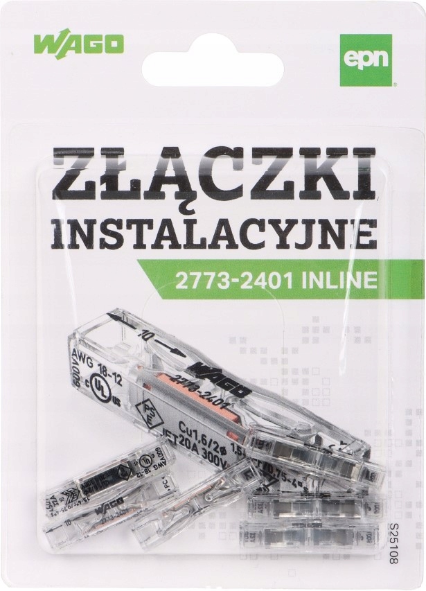 WAGO szybkozłączka mini przelotowa (kpl 6 szt) inline do przewodów sztywnych