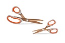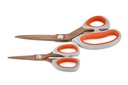 Ножницы универсальные, ими может пользоваться как правша, так и левша. Они используются для резки ткани, трикотаж, пленка, бумага и другие материалы. Они имеют очень удобные ручки из пластик с мягкой нескользящей вставкой для удобного захвата и точности порезы. Ножницы изготовлены из нержавеющей стали, а лезвия покрыты титановым слоем. Они имеют специальный винт, обеспечивающий раскручивание ножниц. Благодаря соответствующему заточки имеют микрозубки, что предотвращает скольжение скользких материалов вдоль лезвия.