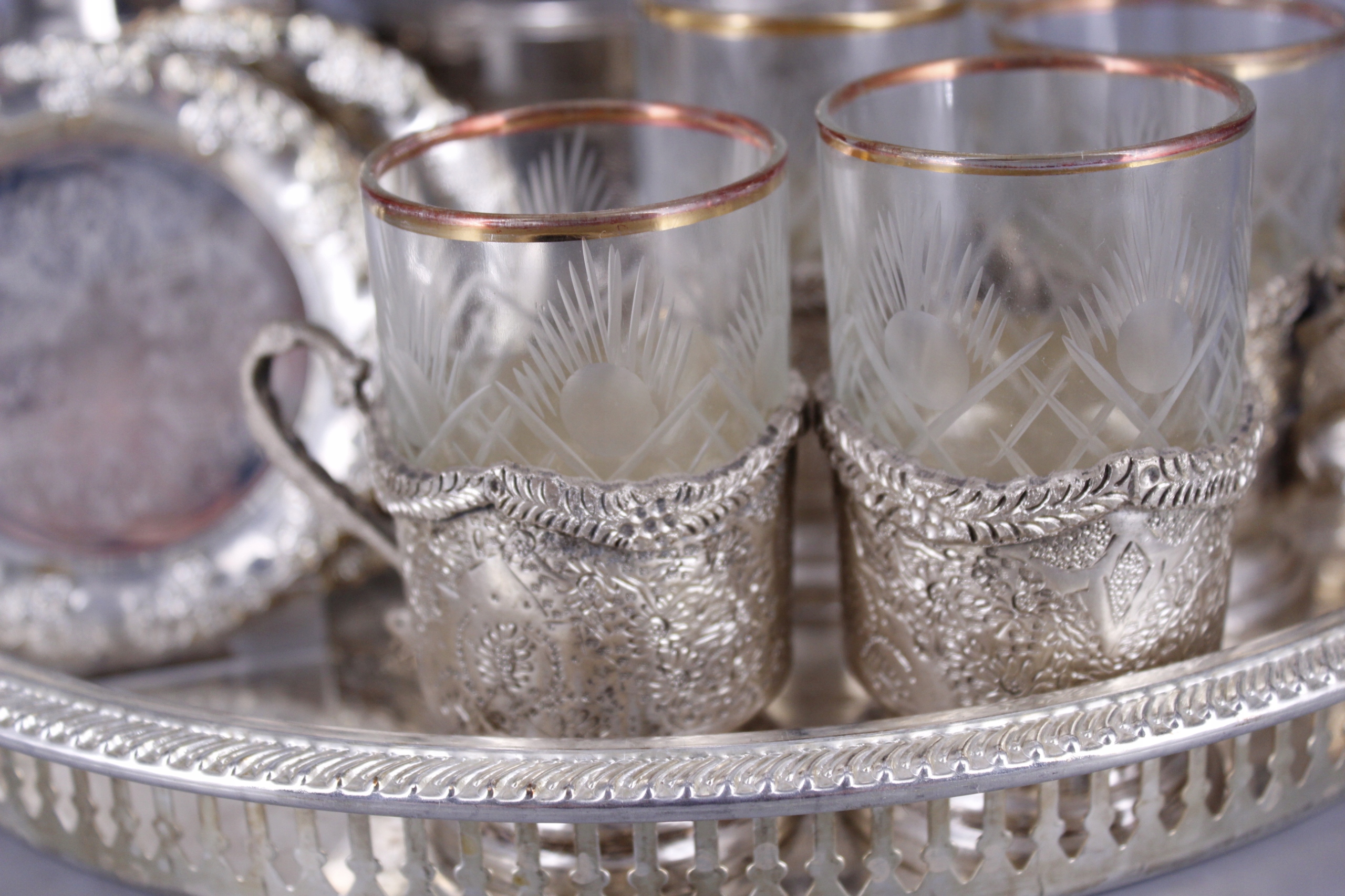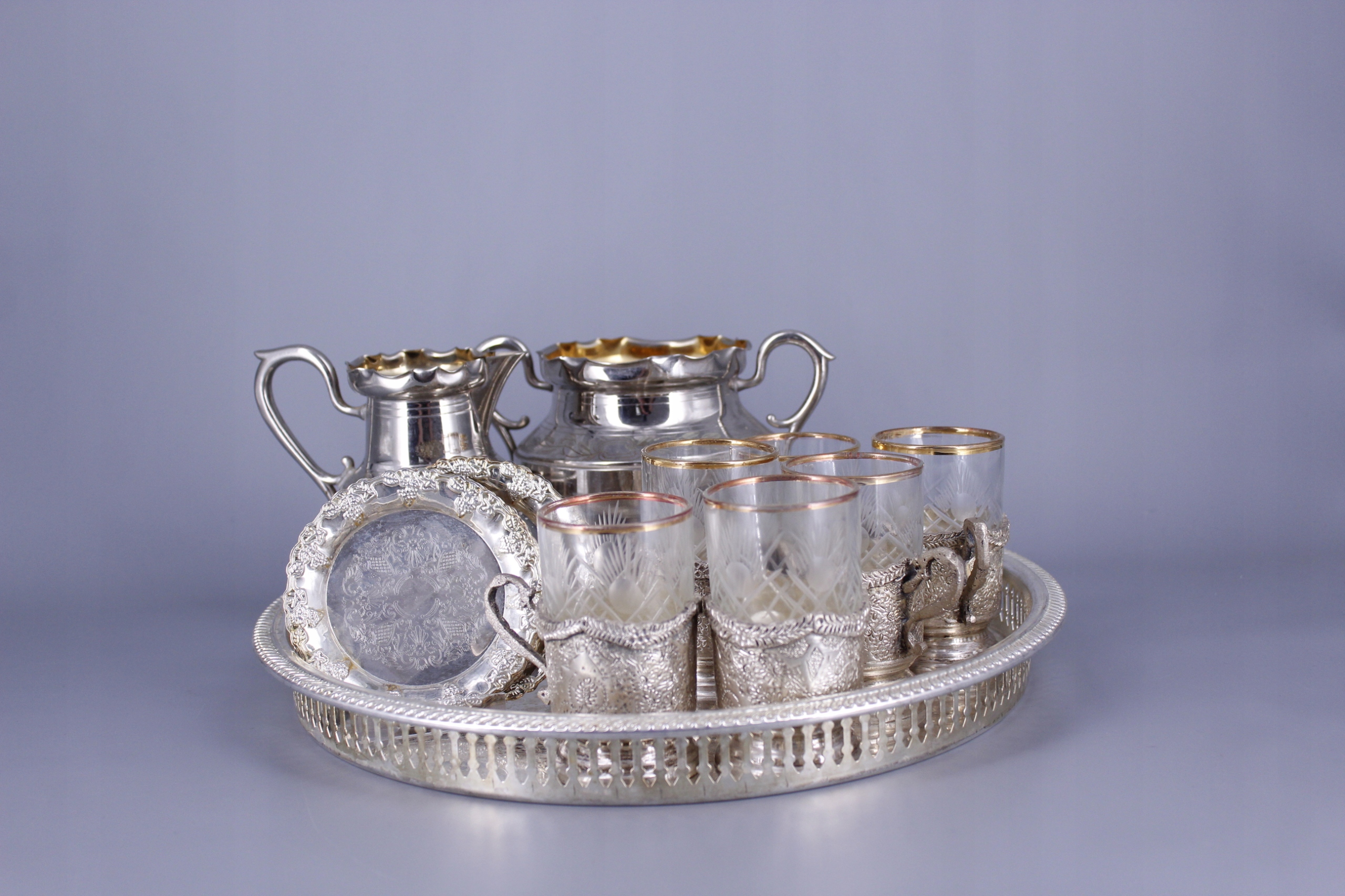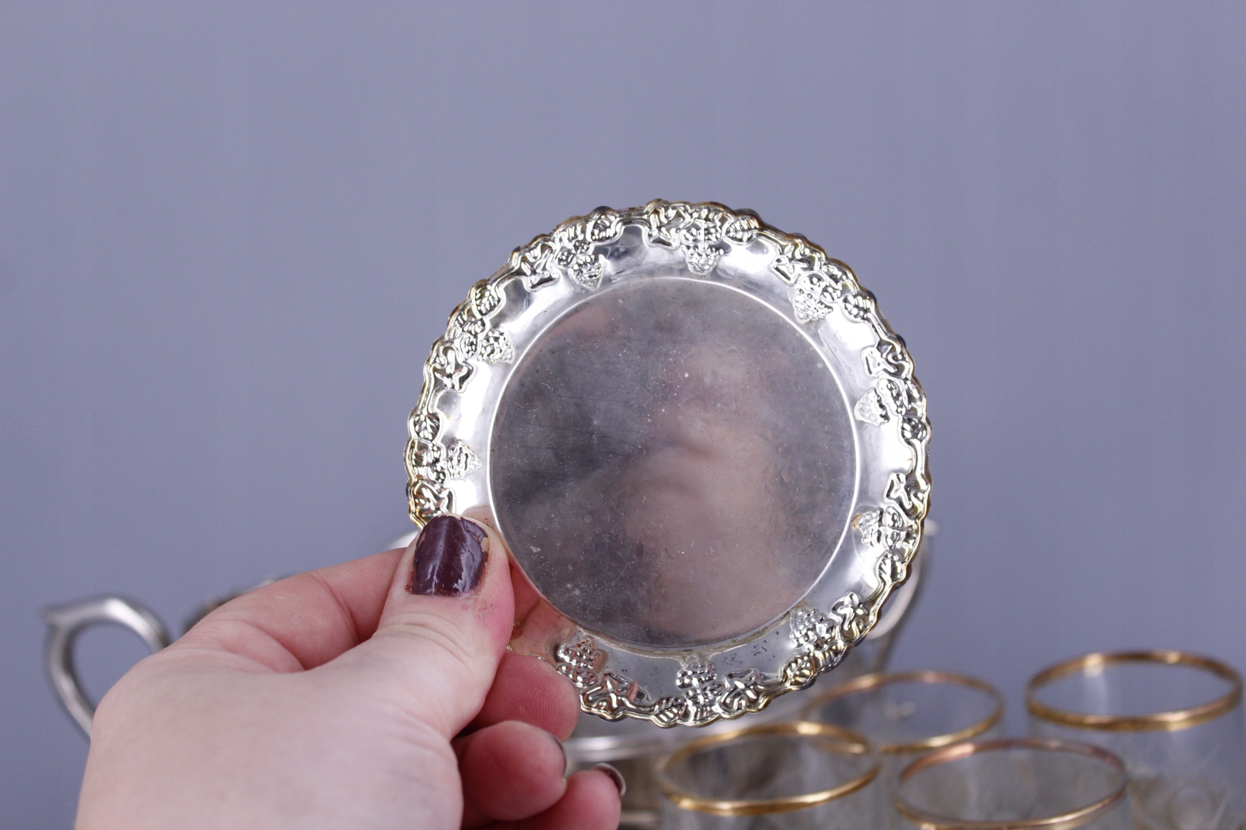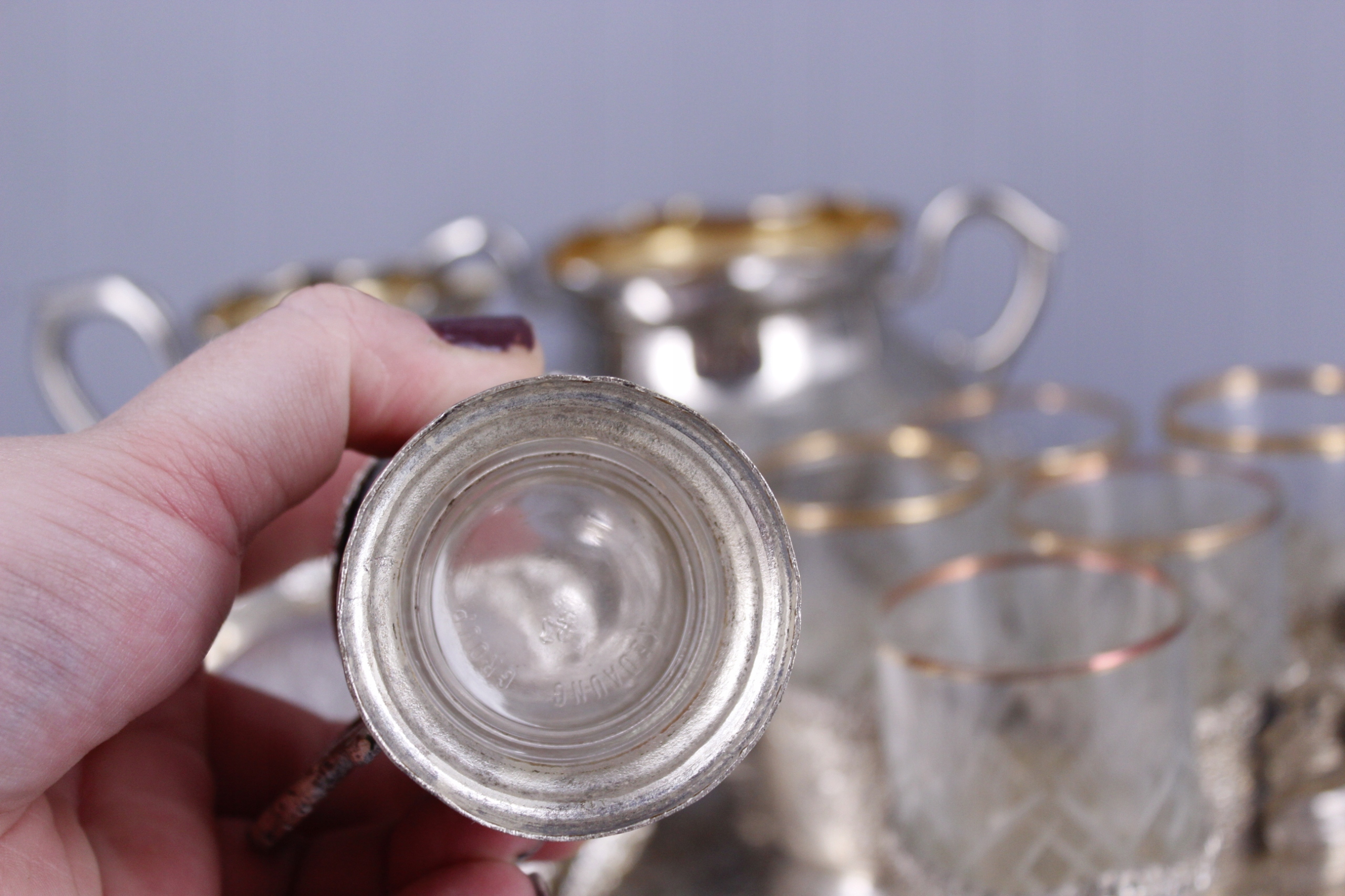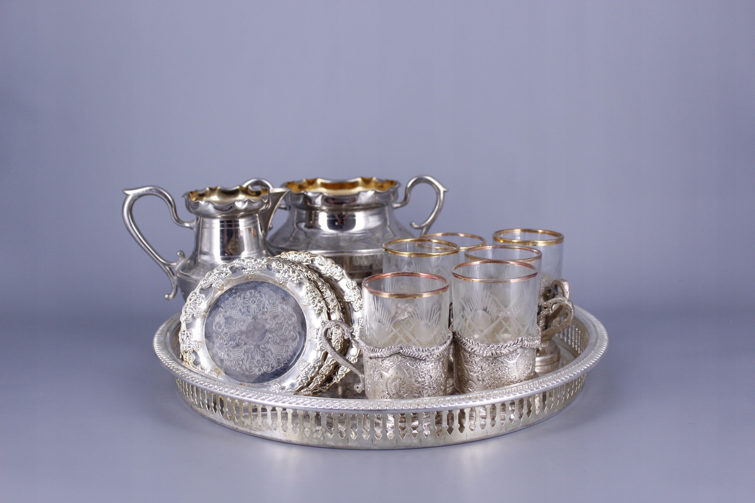 Przedmiotem sprzedaży jest komplet przedmiotów platerowanych ze zdjęć.