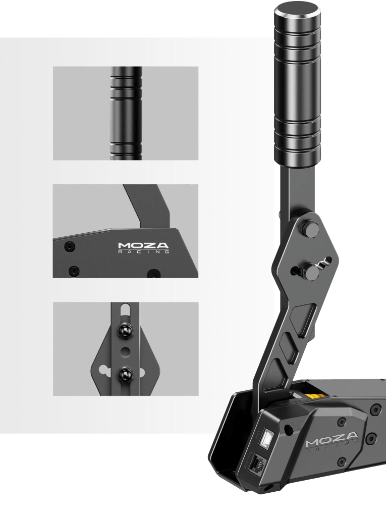 Ręczny hamulec MOZA HBP został zaprojektowany ergonomicznie i estetycznie. Może być łatwo zamontowany do wielu stelaży dostępnych na rynku. Dodatkowo, opcjonalne zaciski od MOZA Racing umożliwiają montaż do stołu lub biurka.