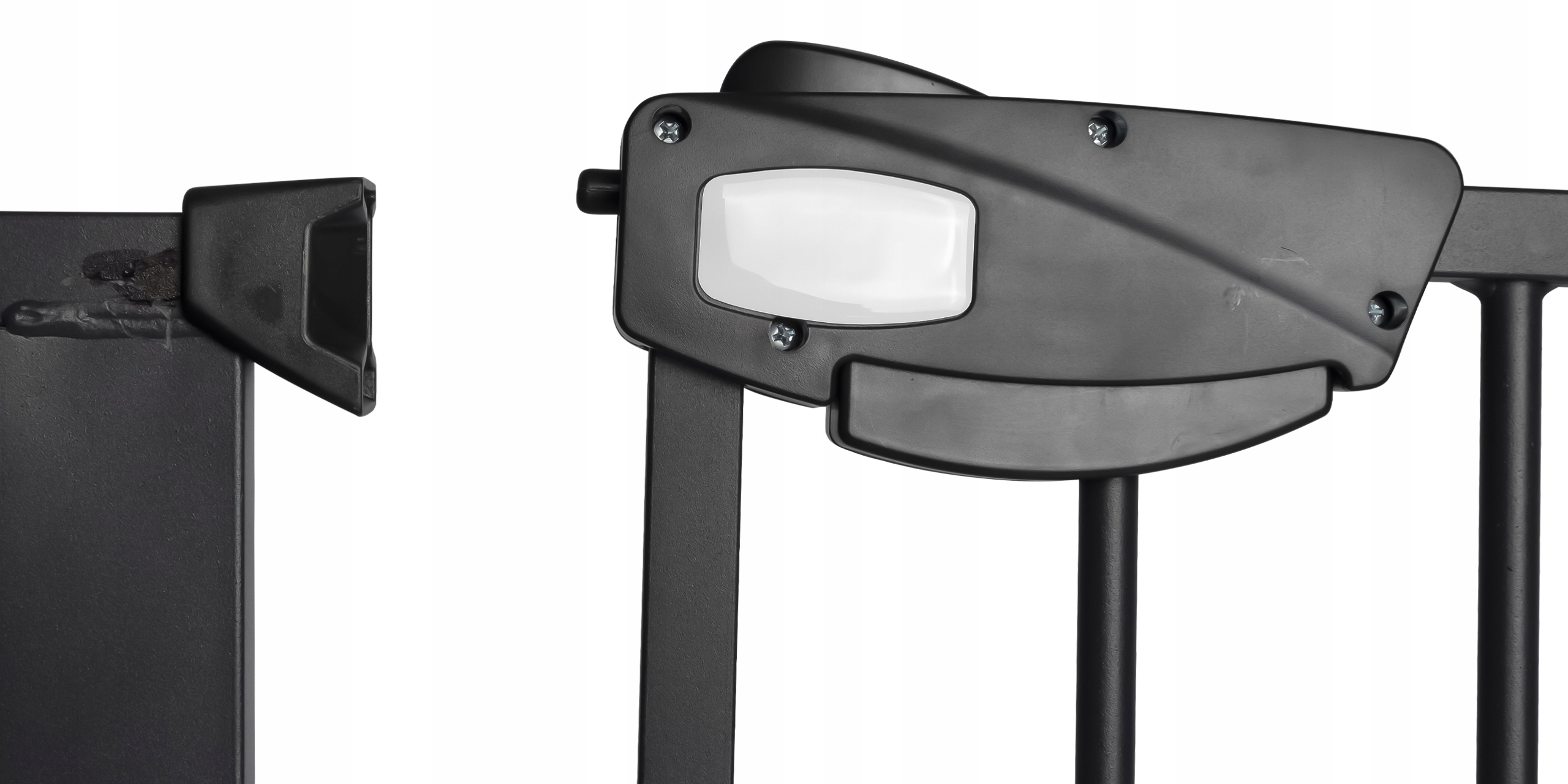 Bramka posiada skuteczną blokadę drzwi, która jest prosta w użytku dla dorosłych oraz młodzieży, ale nie do sforsowania przez małe dzieci. Aby otworzyć drzwi należy zwolnić blokadę dodatkową u dołu bramki oraz wcisnąć oba przyciski jednoczenie znajdujące się na górze.