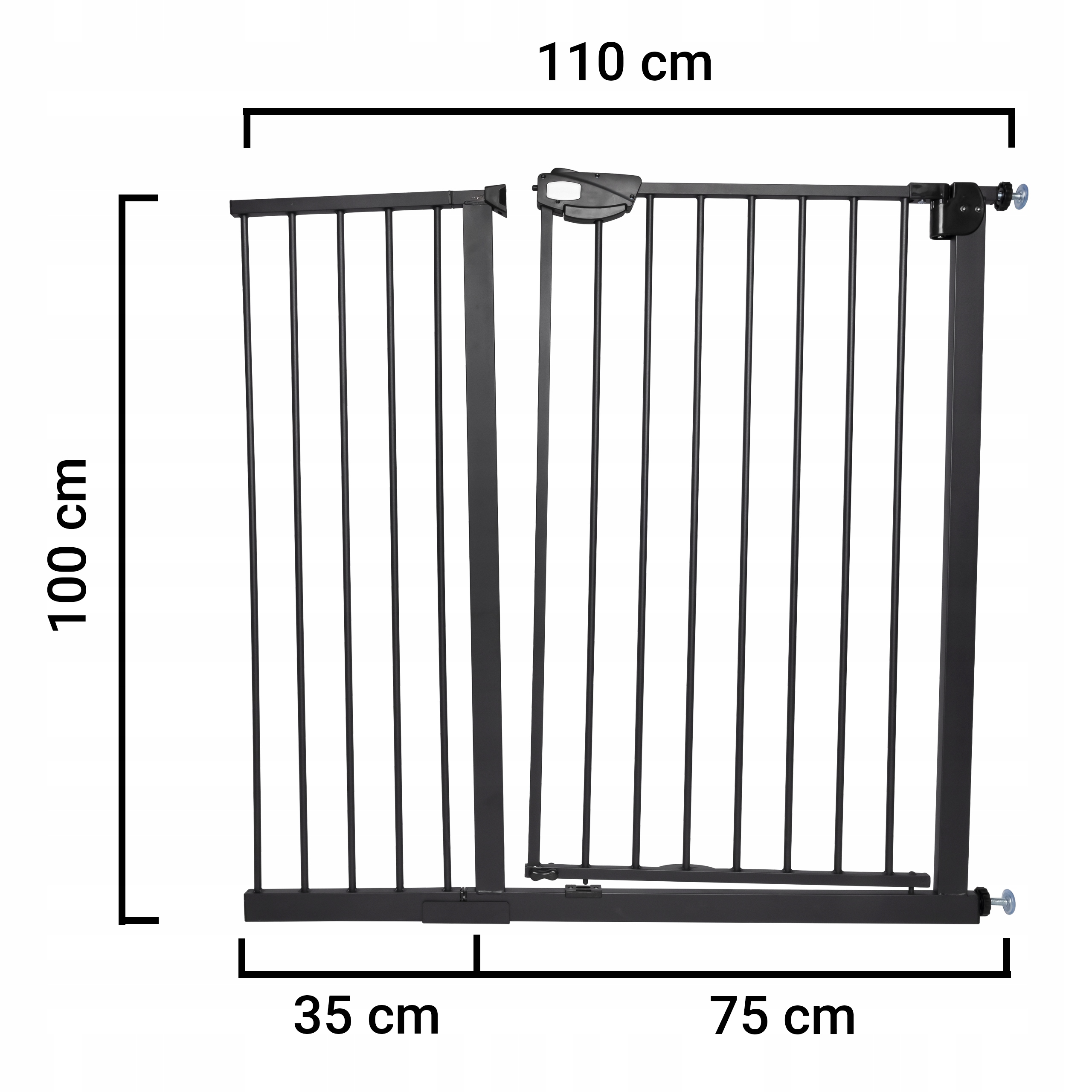 Bramka będzie pasować do futryn oraz przestrzeni o szerokości 75 lub 110 cm
