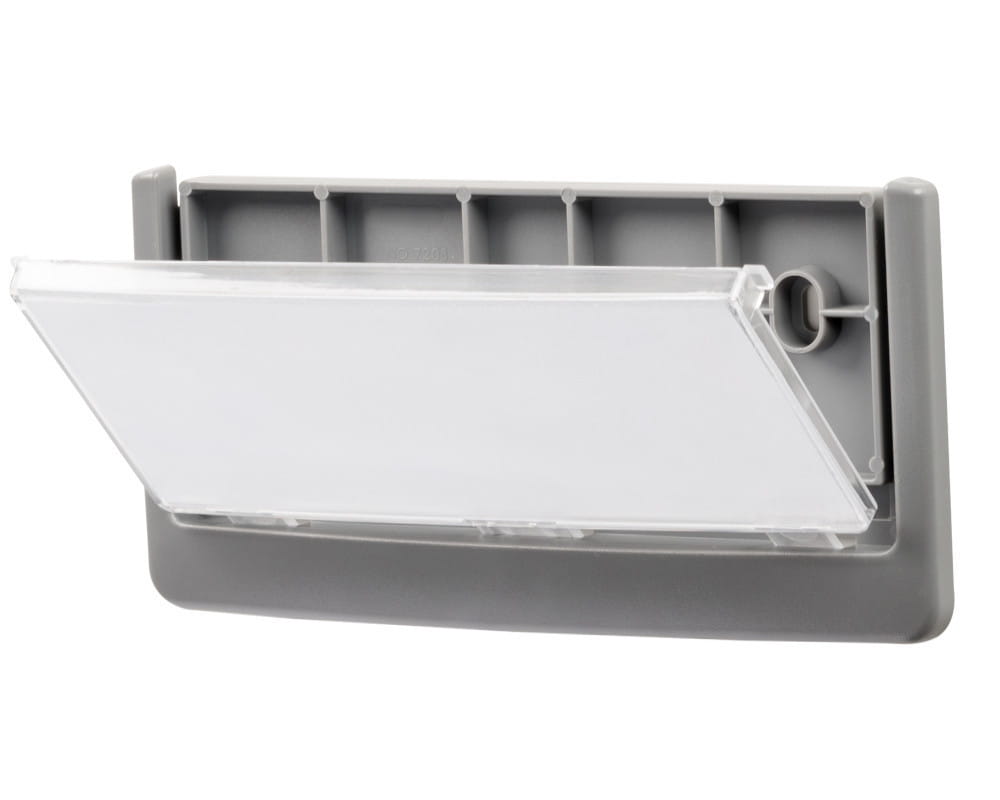 Gert to seria wyjątkowo eleganckich tabliczek o nowoczesnym wyglądzie i klasycznym, pasującym do wszystkich wnętrz, popielatym kolorze. Wymiana treści następuje poprzez otwarcie zatrzasków tabliczki, jednym ruchem, bez konieczności posiadania jakichkolwiek narzędzi.