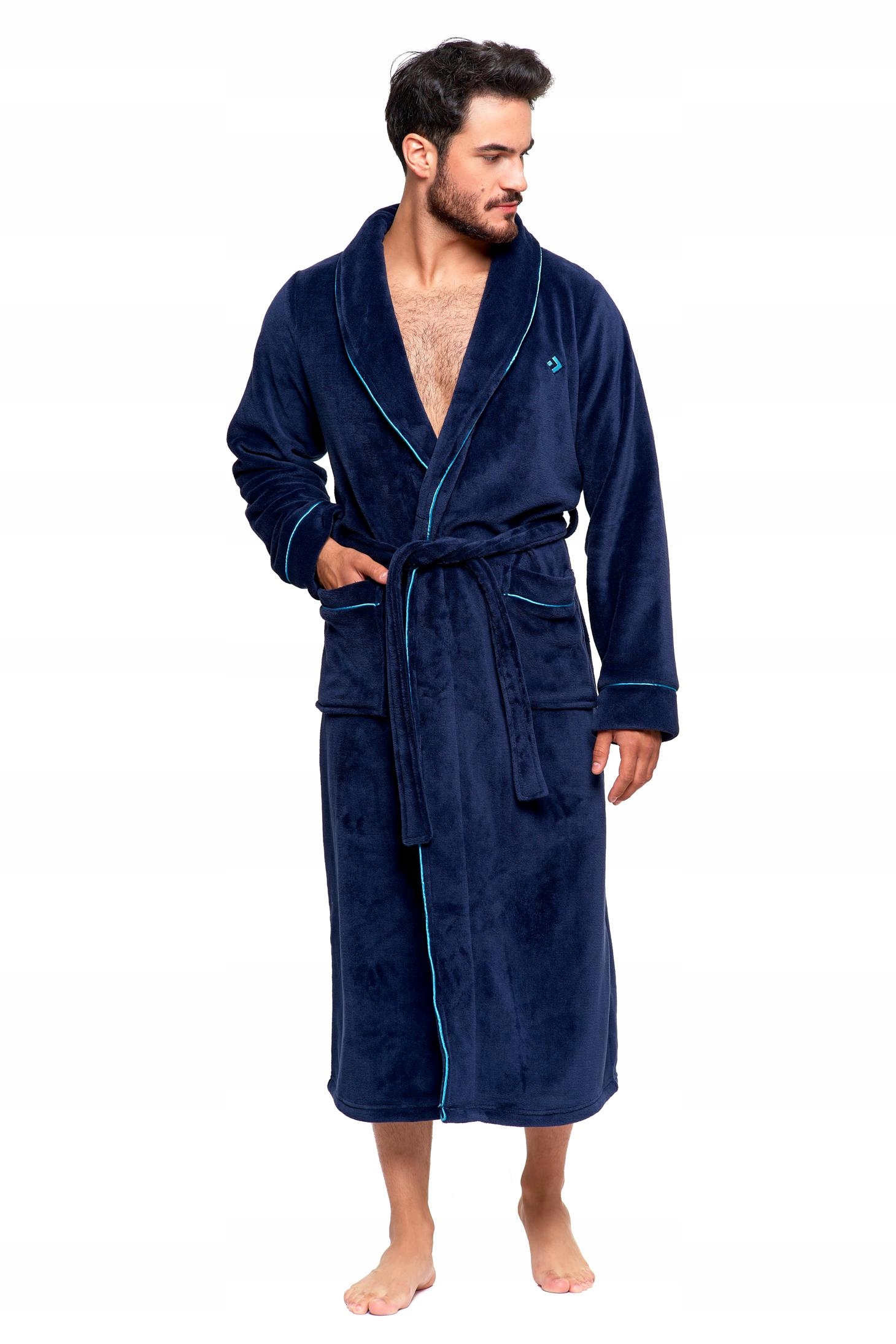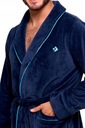 Dzięki swojemu luźnemu fasonowi zapewnia pełną swobodę ruchów, co sprawia, że jest idealny na codzienne relaksujące wieczory i poranki. Granatowy kolor szlafroka tworzy elegancką i niezobowiązującą paletę barw, która pasuje do różnych stylizacji i wystrojów wnętrz. Bez względu na to, czy nosisz go po kąpieli, podczas leniwego weekendu czy podczas relaksu przed telewizorem, ten szlafrok dodaje odrobiny luksusu i klasy do Twojego domu.